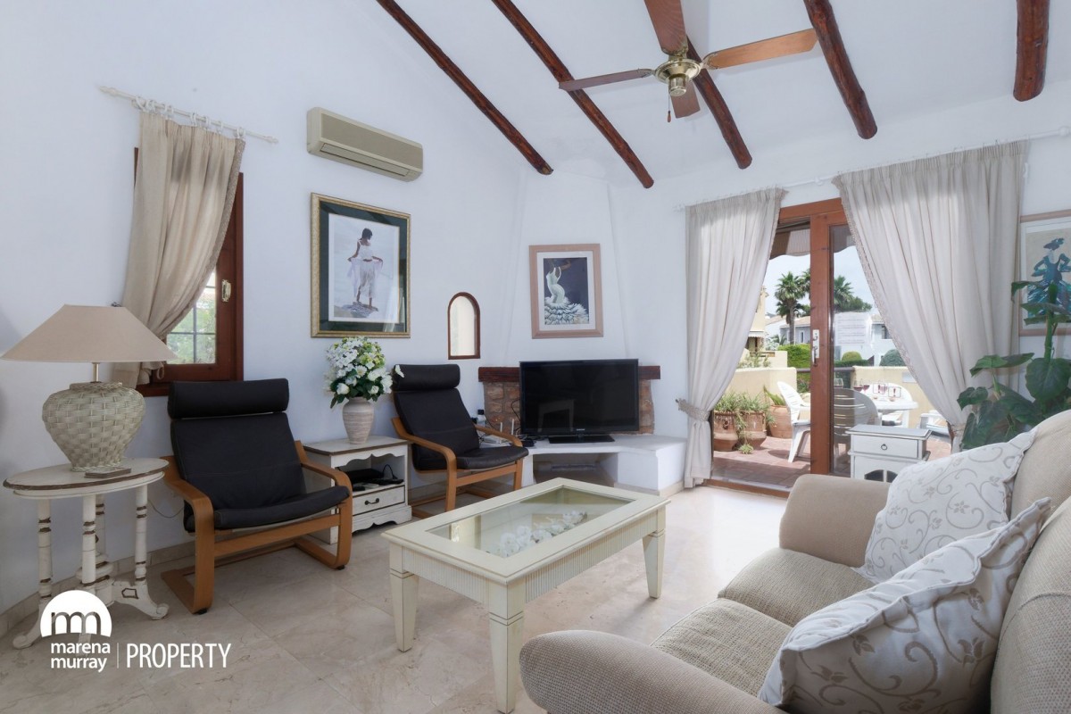 Found amongst the manicured gardens of El Rancho and just a few steps away from one of the nine community pools, this semi-detached property is perfect for those who are looking for a convenient yet low maintenance home. Maintaining its original essence, it was constructed in 1987. Offering a combined lounge/dining room that flows naturally out to the principal terrace thanks to its large patio door. The bedroom suite has access to a small private terrace, enjoying your morning coffee or tea has never been that easy! The villa features an additional roof deck, perfect for you to enjoy the sun all day long. Being sold fully furnished, with parking close by, and sports rights, it is our pleasure as sole agents to offer this fine property that would be ideal for all-year-round living.