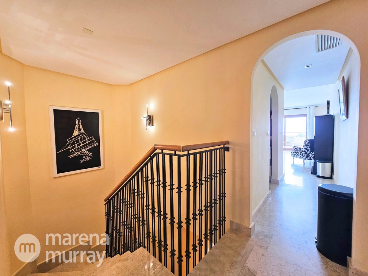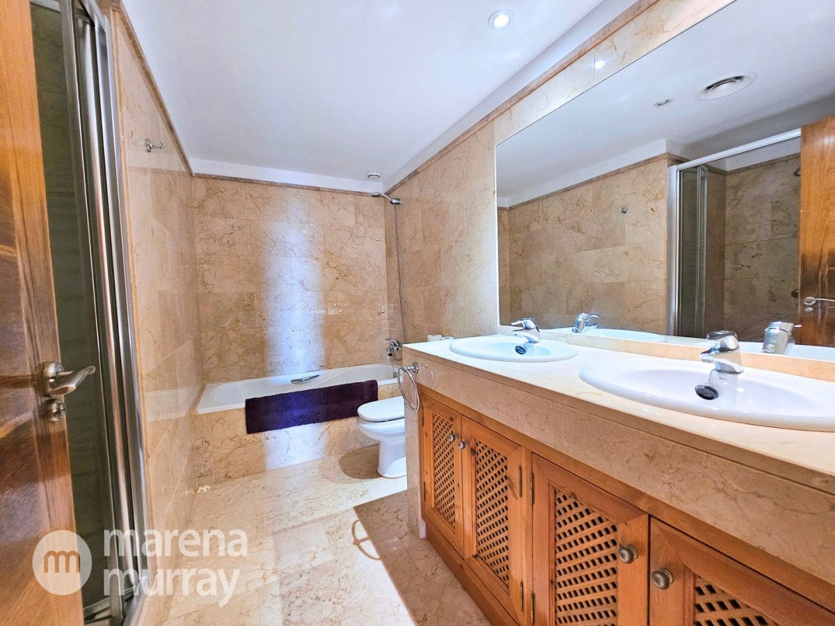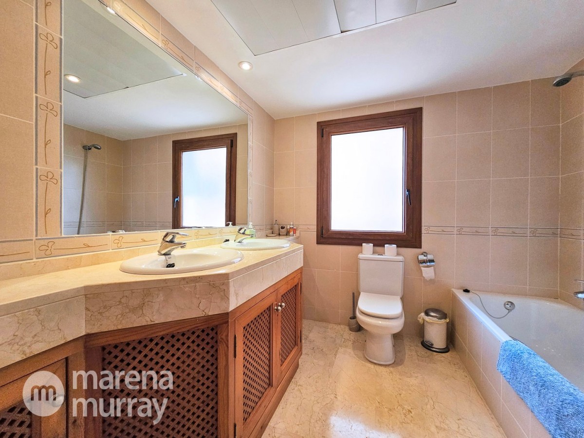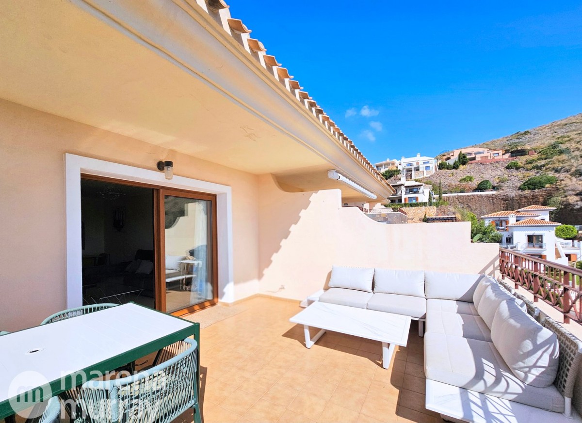 In a quiet spot in La Manga Club, this duplex apartment in the Buena Vista community, is the perfect spot for a holiday home or relocation property. This duplex apartment has on the lower level two large double bedrooms, both ensuite, with the master having its down dressing room area. Both bedrooms have access to a large private terrace looking toward the hills of Calblanque national park. The entrance level of the apartment leads through to a well-equipped, good size kitchen with pass-through to the lounge/diner. This is a perfect spot for entertaining guests and hosting family and friends in the open plan living area with step free access onto another terrace which has views of La Manga del Mar Menor, Calblanque, and the golf greens of the resort. With this property you have access to a community pool exclusively for the Buena Vista apartments, and an allocated parking space for the property just outside. The benefit of being on the north side of the resort allows for much winter sun and a quieter community.
