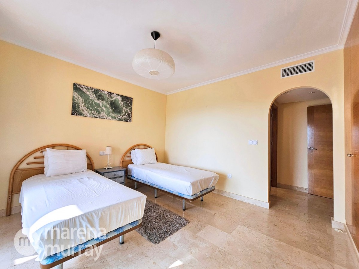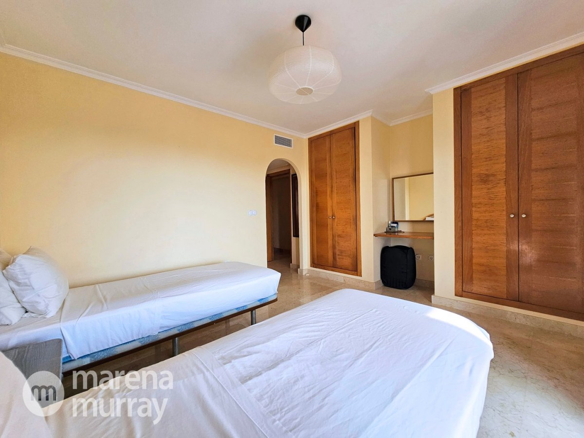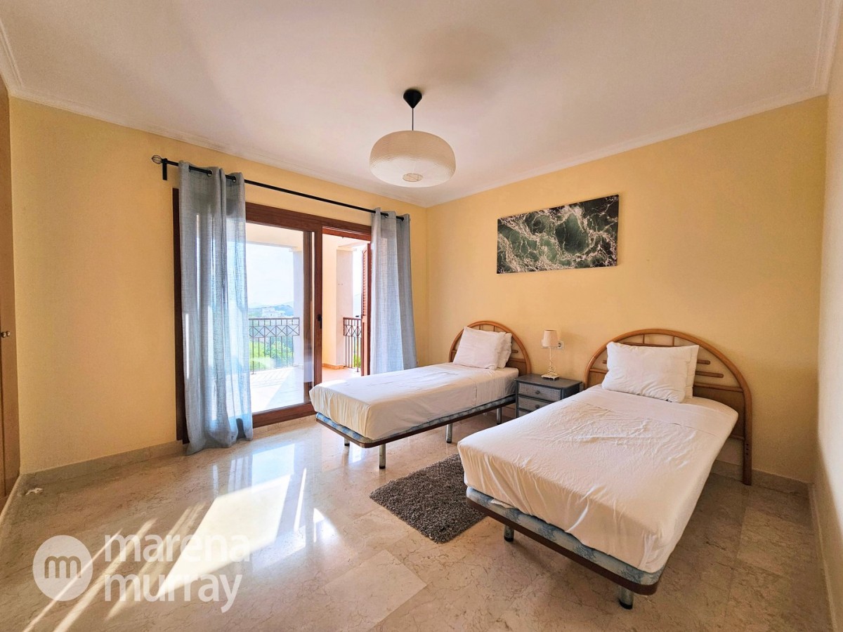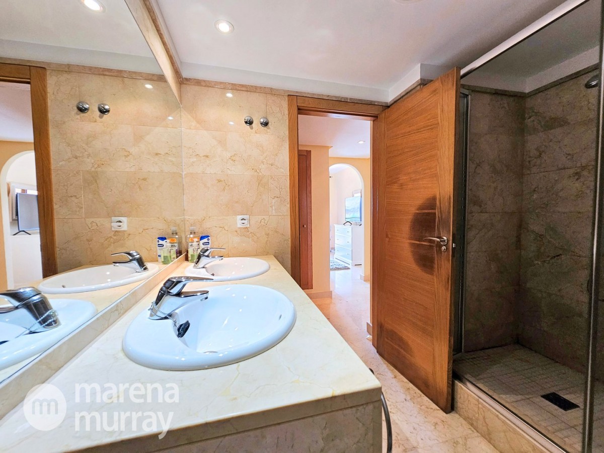 In a quiet spot in La Manga Club, this duplex apartment in the Buena Vista community, is the perfect spot for a holiday home or relocation property. This duplex apartment has on the lower level two large double bedrooms, both ensuite, with the master having its down dressing room area. Both bedrooms have access to a large private terrace looking toward the hills of Calblanque national park. The entrance level of the apartment leads through to a well-equipped, good size kitchen with pass-through to the lounge/diner. This is a perfect spot for entertaining guests and hosting family and friends in the open plan living area with step free access onto another terrace which has views of La Manga del Mar Menor, Calblanque, and the golf greens of the resort. With this property you have access to a community pool exclusively for the Buena Vista apartments, and an allocated parking space for the property just outside. The benefit of being on the north side of the resort allows for much winter sun and a quieter community.