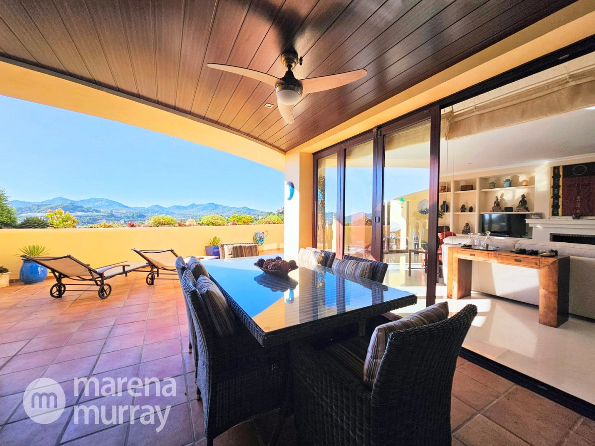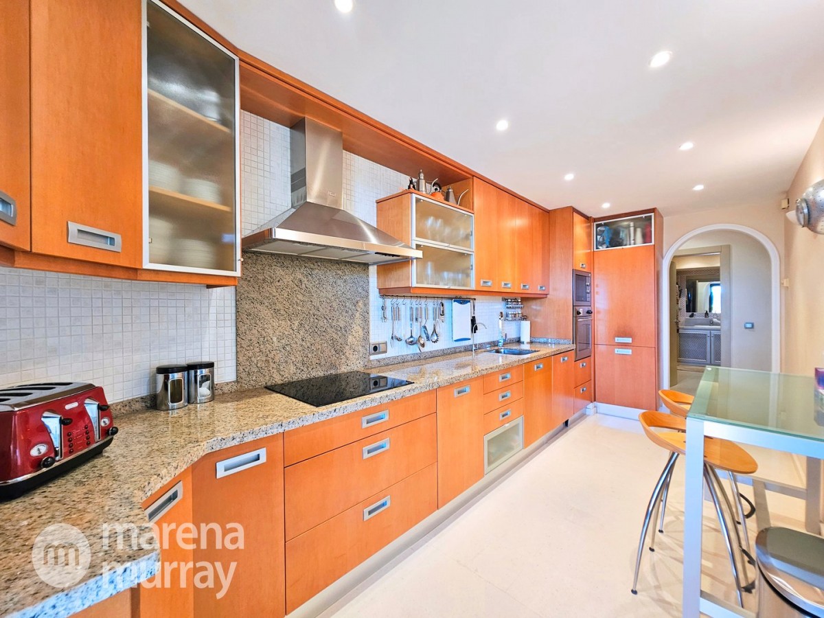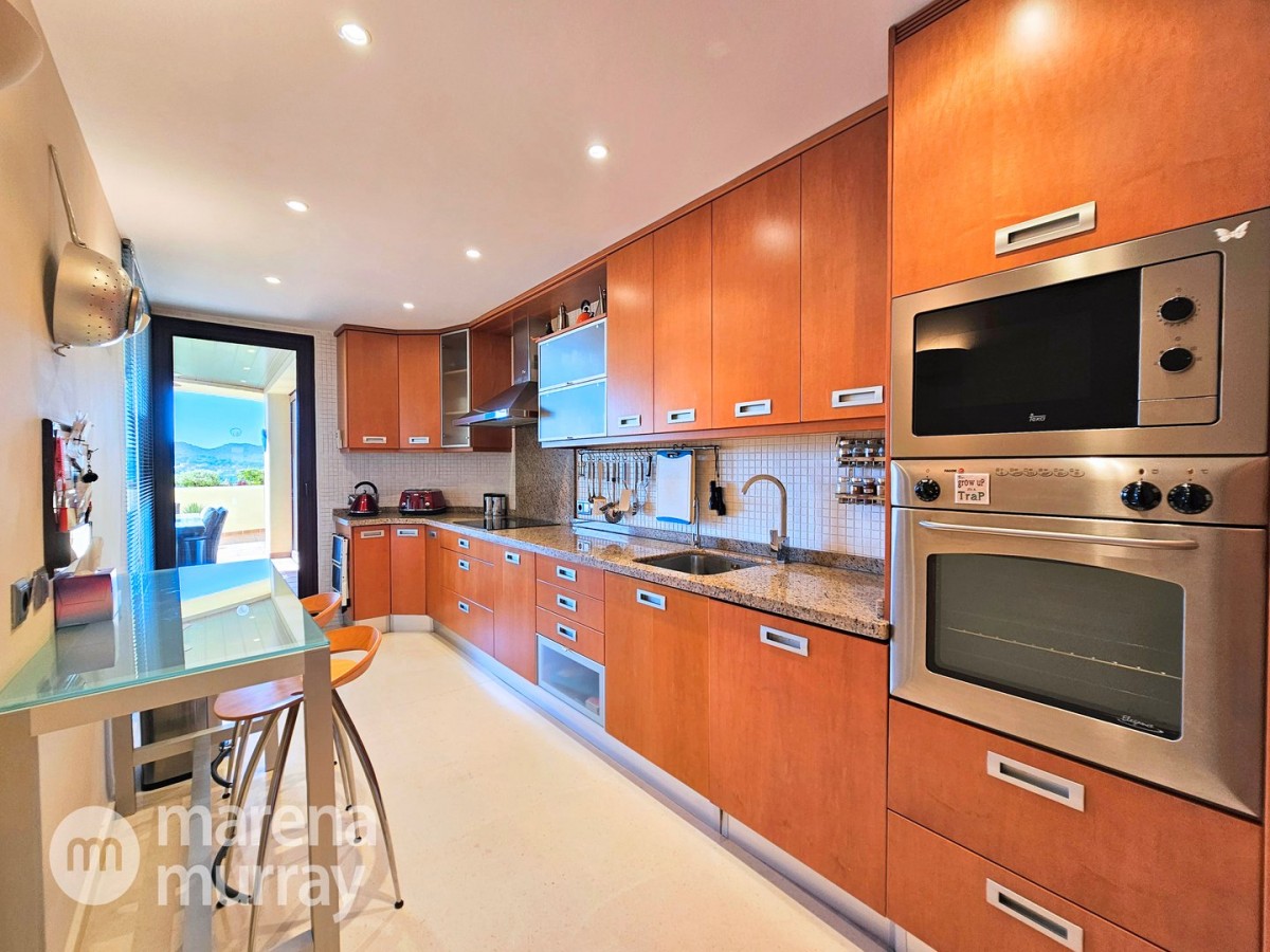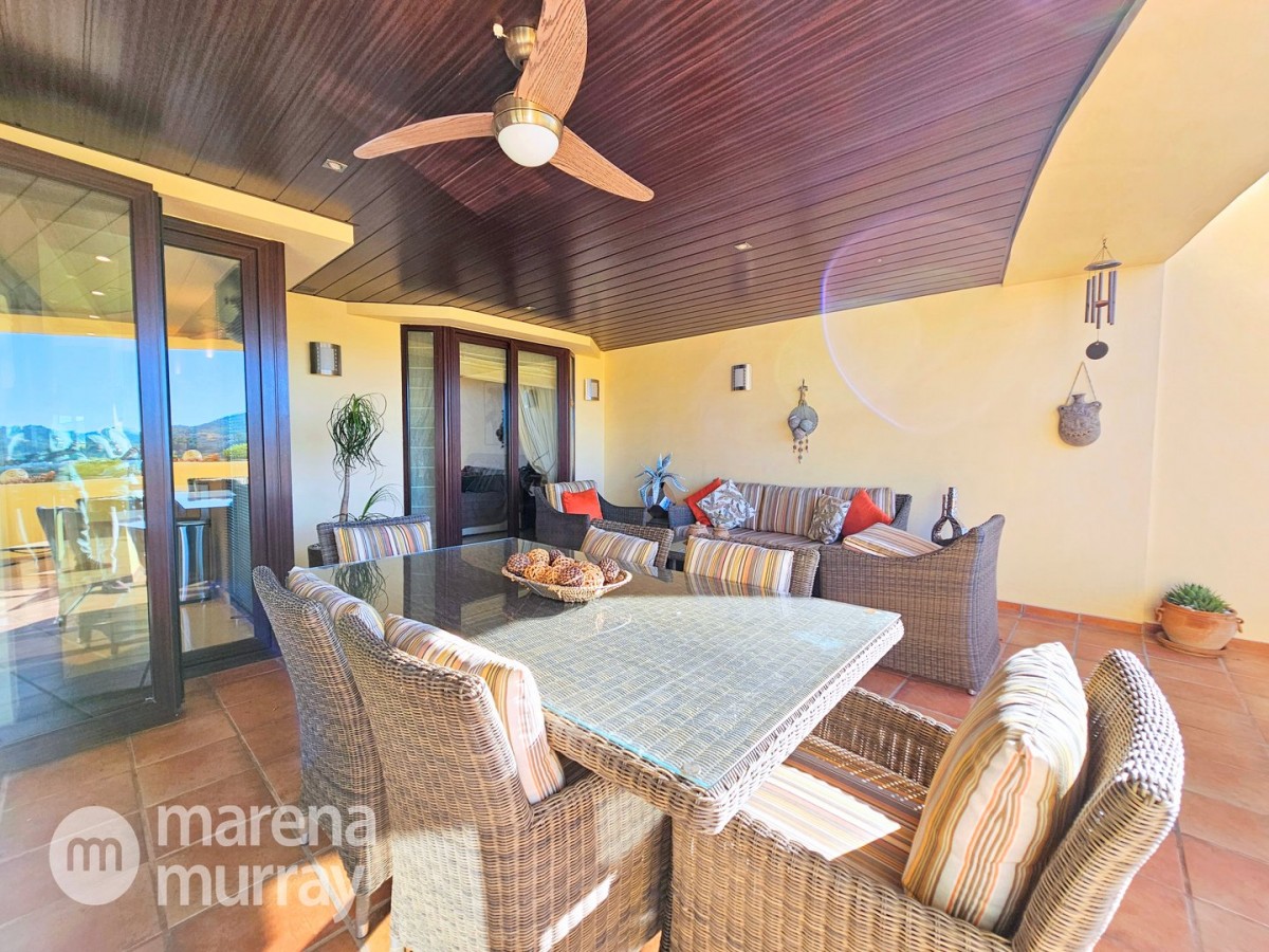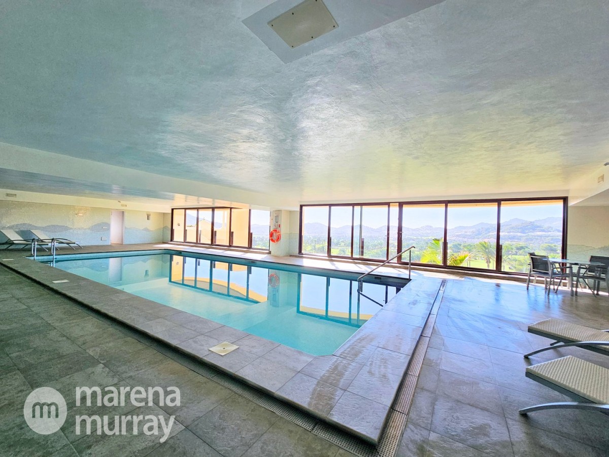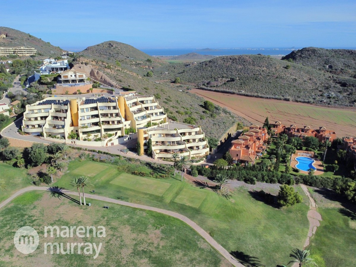 Located in the sought after Las Terrazas Coto del Golf community within La Manga Club, this elegant two bedroom apartment offers exceptional views over the golf courses and the picturesque Calblanque mountains. Notably, the property is larger than a standard Las Terrazas two bedroom, as a former third bedroom has been converted into a dedicated dining room, which could easily be reverted back if desired. The property features a spacious lounge with bi-fold doors that open fully onto a large south-facing sun terrace, creating an effortless flow between indoor and outdoor living. The separate dining room, accessed through sliding doors, offers an ideal space for entertaining. The master bedroom suite includes ample fitted wardrobes, a luxurious ensuite bathroom with both bath and walk-in shower, with direct access to the terrace. The second double bedroom also benefits from generous storage and is served by a modern family bathroom. The well equipped kitchen is both functional and stylish, designed with convenience in mind. The sun terrace enjoys all day sunshine and features a covered area for shade during the warmer months, as well as a raised seating platform providing panoramic views, for those that enjoy watching the golf, perfect to relax and enjoy the surroundings. Residents of Las Terrazas Coto del Golf have access to an impressive indoor heated swimming pool with viewing deck, changing rooms, and showers. The property also includes two private parking spaces and a lockable storage cupboard in the secure underground garage.