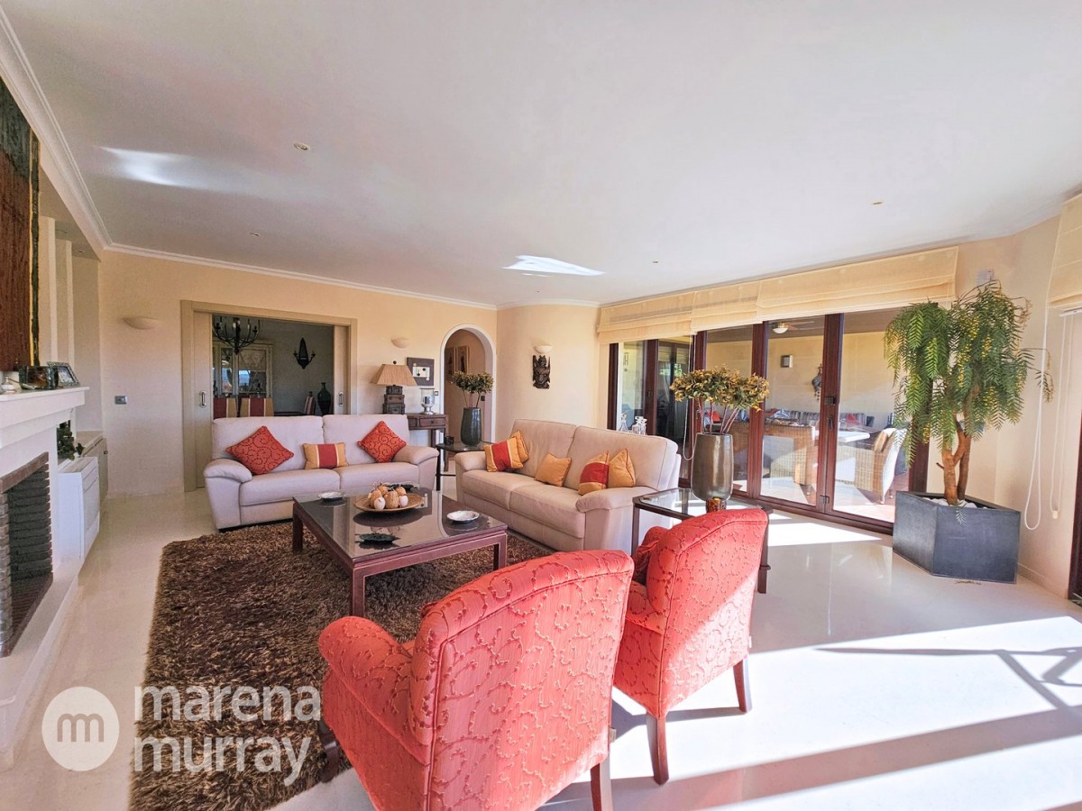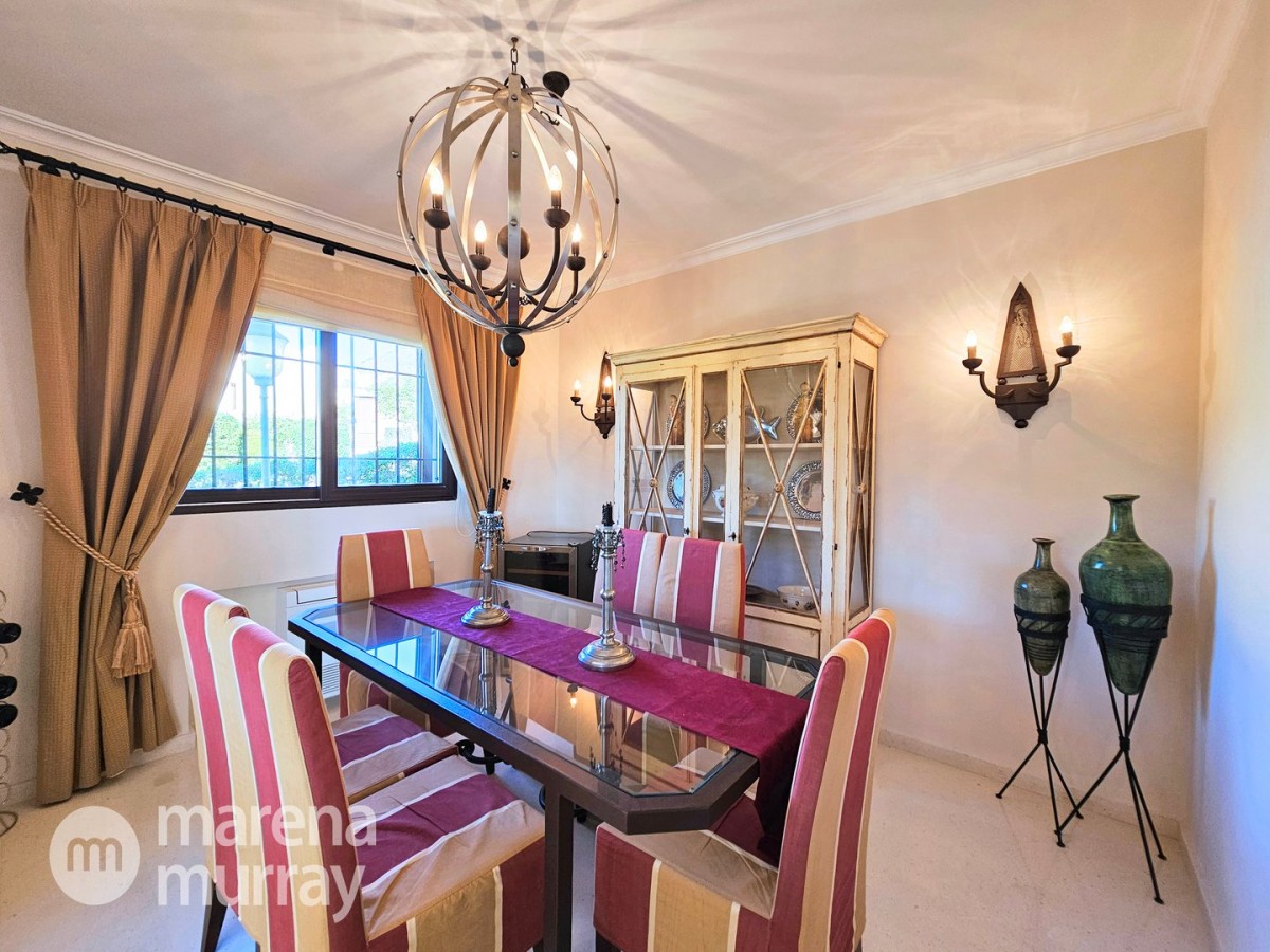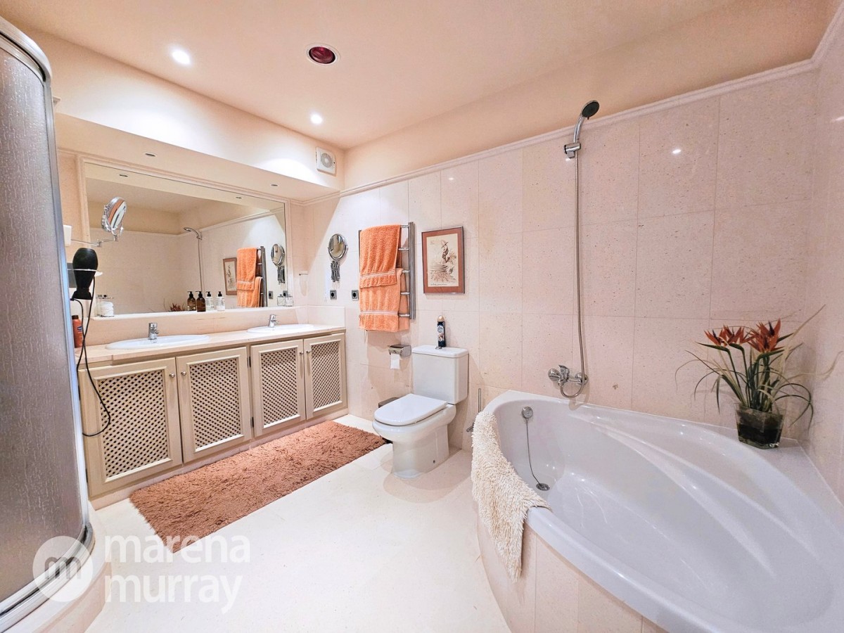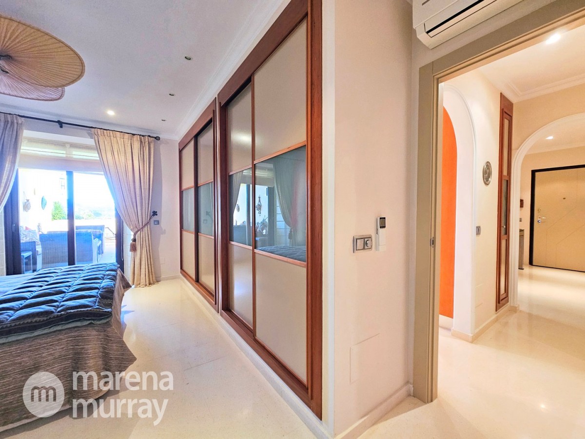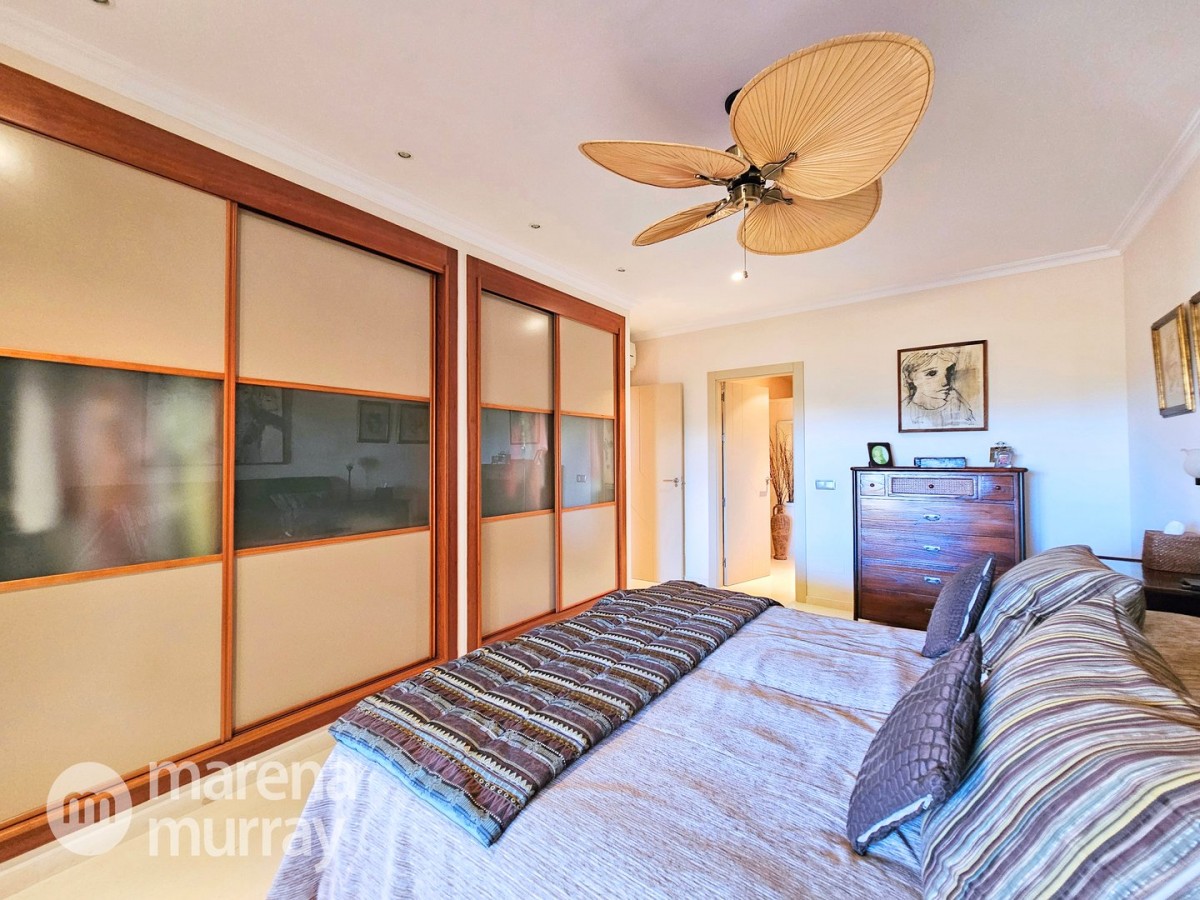 Located in the sought after Las Terrazas Coto del Golf community within La Manga Club, this elegant two bedroom apartment offers exceptional views over the golf courses and the picturesque Calblanque mountains. Notably, the property is larger than a standard Las Terrazas two bedroom, as a former third bedroom has been converted into a dedicated dining room, which could easily be reverted back if desired. The property features a spacious lounge with bi-fold doors that open fully onto a large south-facing sun terrace, creating an effortless flow between indoor and outdoor living. The separate dining room, accessed through sliding doors, offers an ideal space for entertaining. The master bedroom suite includes ample fitted wardrobes, a luxurious ensuite bathroom with both bath and walk-in shower, with direct access to the terrace. The second double bedroom also benefits from generous storage and is served by a modern family bathroom. The well equipped kitchen is both functional and stylish, designed with convenience in mind. The sun terrace enjoys all day sunshine and features a covered area for shade during the warmer months, as well as a raised seating platform providing panoramic views, for those that enjoy watching the golf, perfect to relax and enjoy the surroundings. Residents of Las Terrazas Coto del Golf have access to an impressive indoor heated swimming pool with viewing deck, changing rooms, and showers. The property also includes two private parking spaces and a lockable storage cupboard in the secure underground garage.