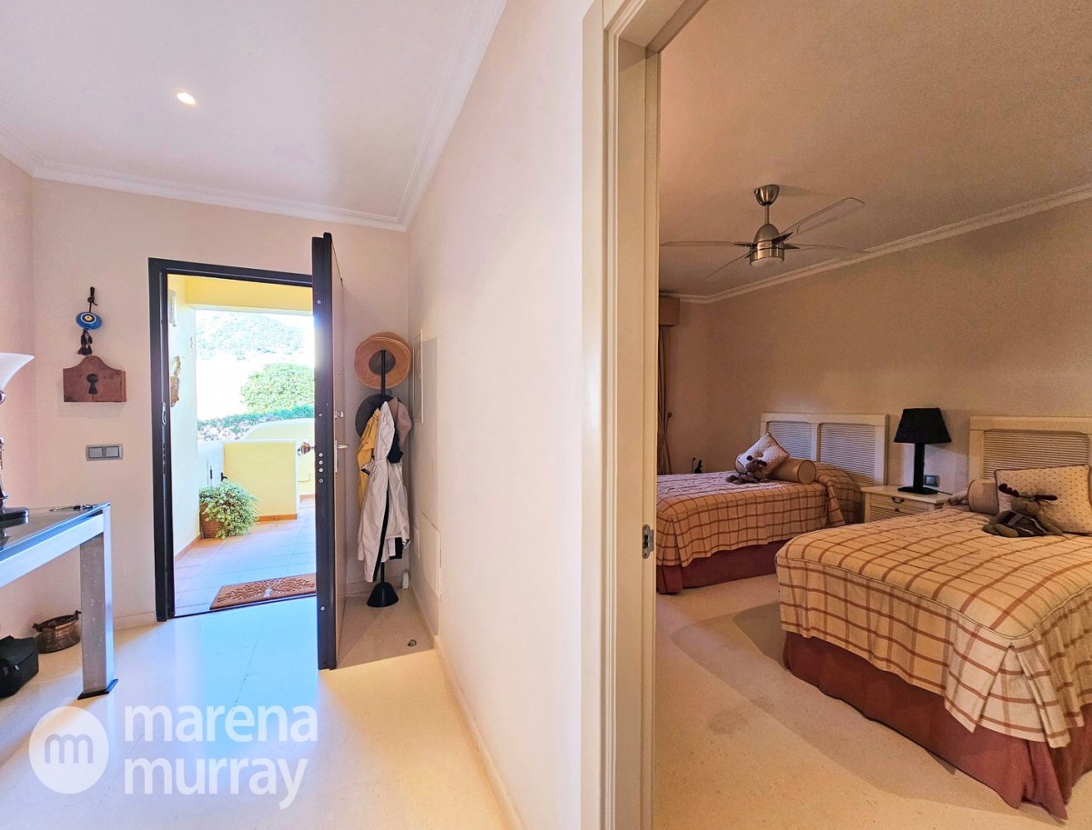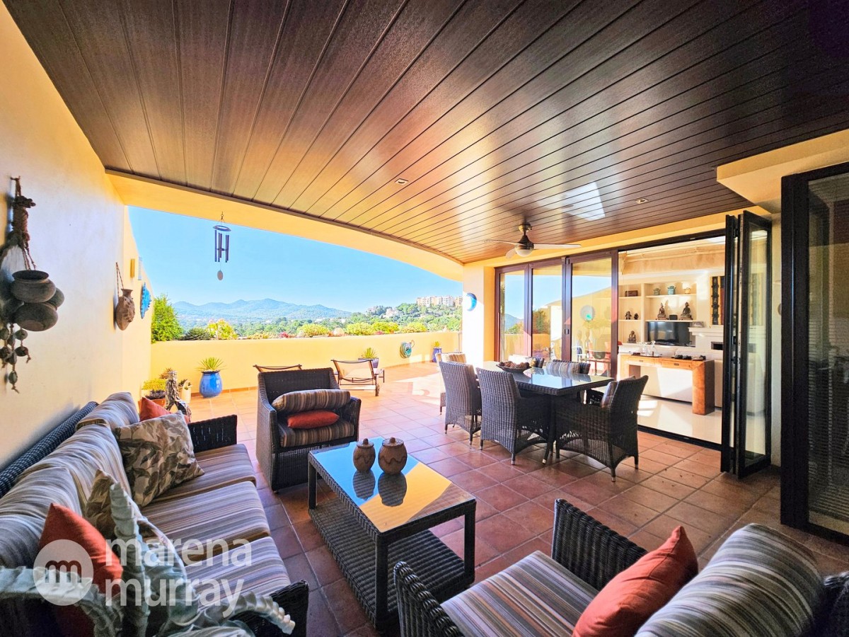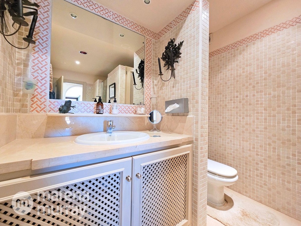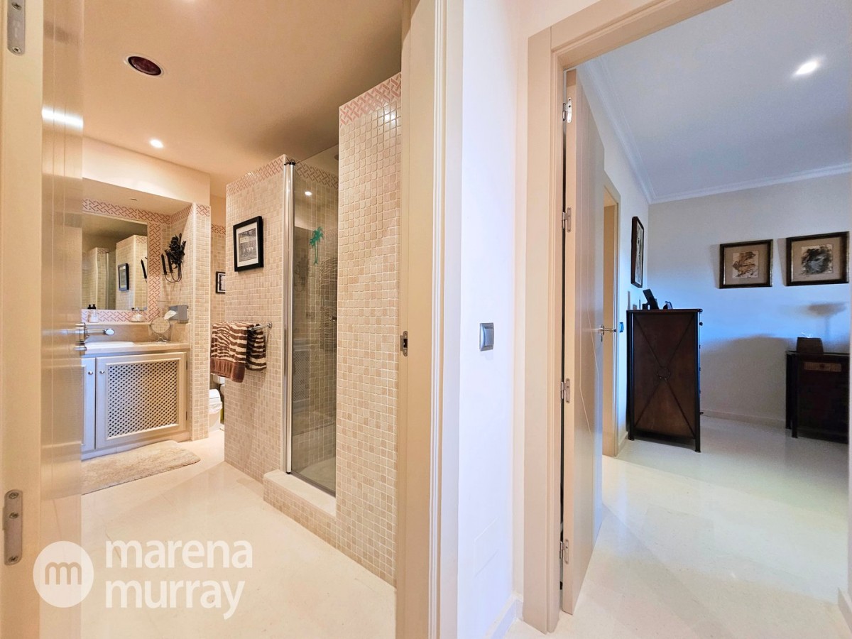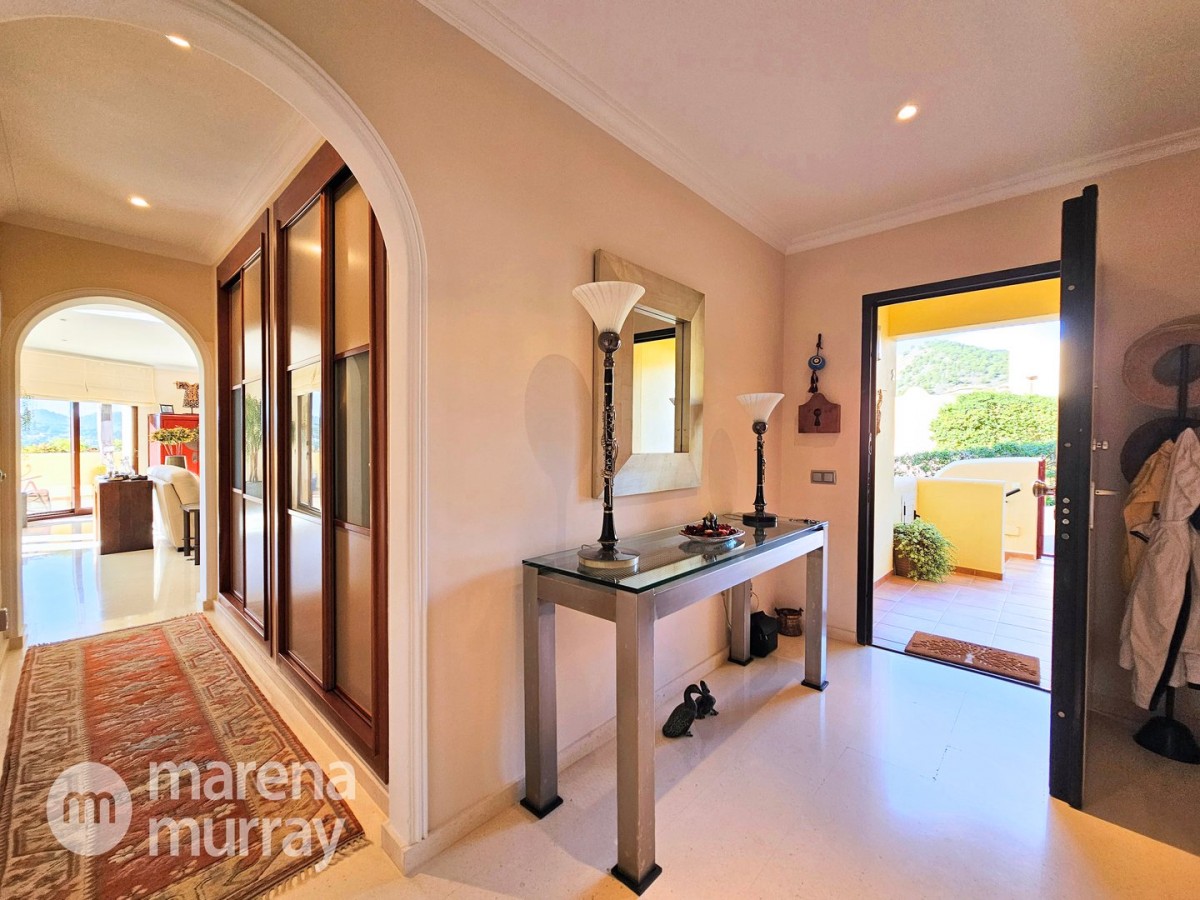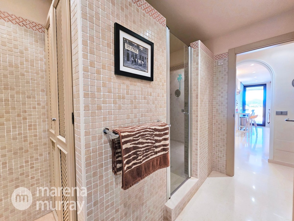 Located in the sought after Las Terrazas Coto del Golf community within La Manga Club, this elegant two bedroom apartment offers exceptional views over the golf courses and the picturesque Calblanque mountains. Notably, the property is larger than a standard Las Terrazas two bedroom, as a former third bedroom has been converted into a dedicated dining room, which could easily be reverted back if desired. The property features a spacious lounge with bi-fold doors that open fully onto a large south-facing sun terrace, creating an effortless flow between indoor and outdoor living. The separate dining room, accessed through sliding doors, offers an ideal space for entertaining. The master bedroom suite includes ample fitted wardrobes, a luxurious ensuite bathroom with both bath and walk-in shower, with direct access to the terrace. The second double bedroom also benefits from generous storage and is served by a modern family bathroom. The well equipped kitchen is both functional and stylish, designed with convenience in mind. The sun terrace enjoys all day sunshine and features a covered area for shade during the warmer months, as well as a raised seating platform providing panoramic views, for those that enjoy watching the golf, perfect to relax and enjoy the surroundings. Residents of Las Terrazas Coto del Golf have access to an impressive indoor heated swimming pool with viewing deck, changing rooms, and showers. The property also includes two private parking spaces and a lockable storage cupboard in the secure underground garage.