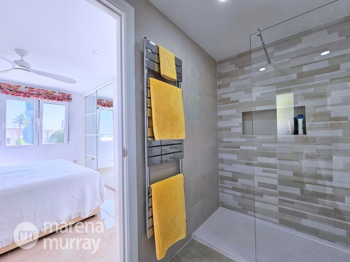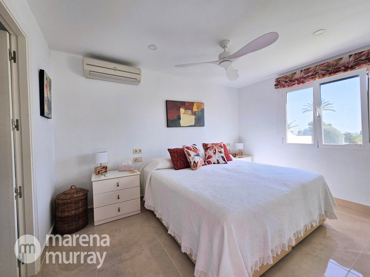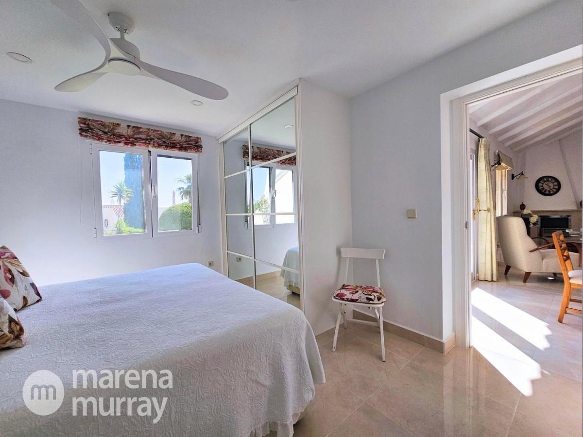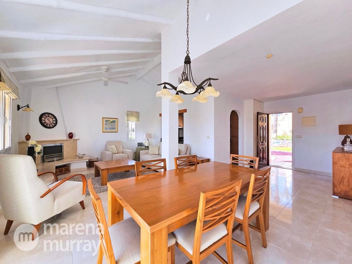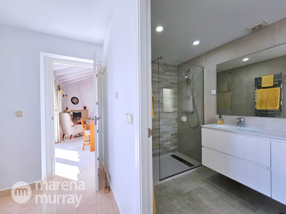 Located in the sought after El Rancho community within the heart of La Manga Club, this beautifully presented property offers modern living with convenience, comfort, and stunning surroundings. With easy access and parking just metres from the door, the property features step-free entry, perfect for all ages and abilities. Step inside to a spacious and contemporary lounge-diner, thoughtfully designed for entertaining family and friends. The open-plan layout includes a modern kitchen fitted with high end appliances and a feature wall opening to the living area, allowing for a social and connected feel throughout the home. There are two generously sized bedrooms, both offering ample storage. The master bedroom boasts a large ensuite bathroom complete with a walk-in shower. The spacious private sun terrace enjoys plentiful sunshine and overlooks the lush, well-maintained community gardens, ideal for relaxing or dining al fresco. An additional highlight is the rooftop solarium, which benefits from all-day sun, year round, and offers views of the surrounding hills of Calblanque National Park. El Rancho is renowned for its charming landscaped gardens and nine swimming pools, each with an adjoining children’s pool, offering a peaceful, family-friendly atmosphere. Situated just a short walk from the lively Bellaluz Plaza, home to a selection of year round restaurants and bars, and within close reach of the newly refurbished tennis and padel club.