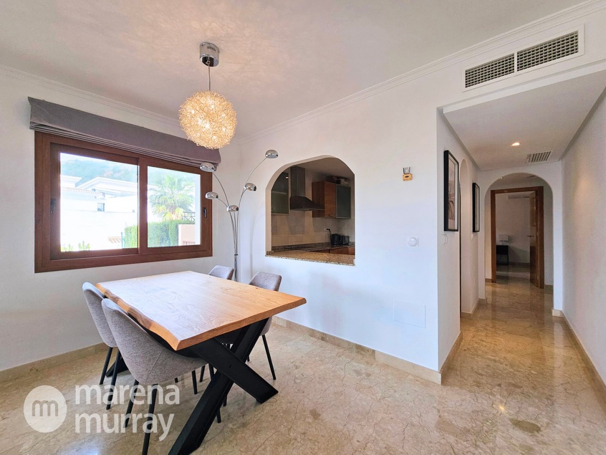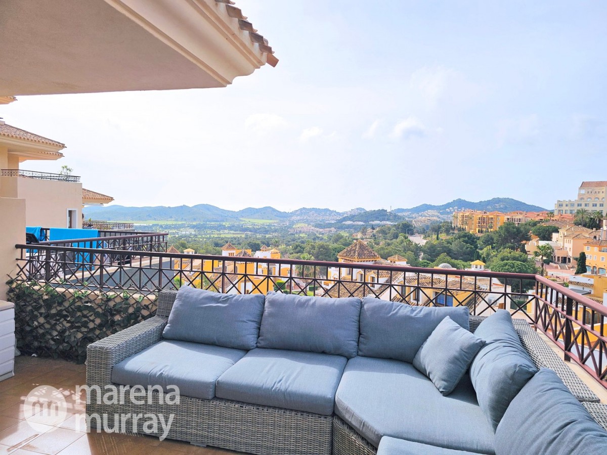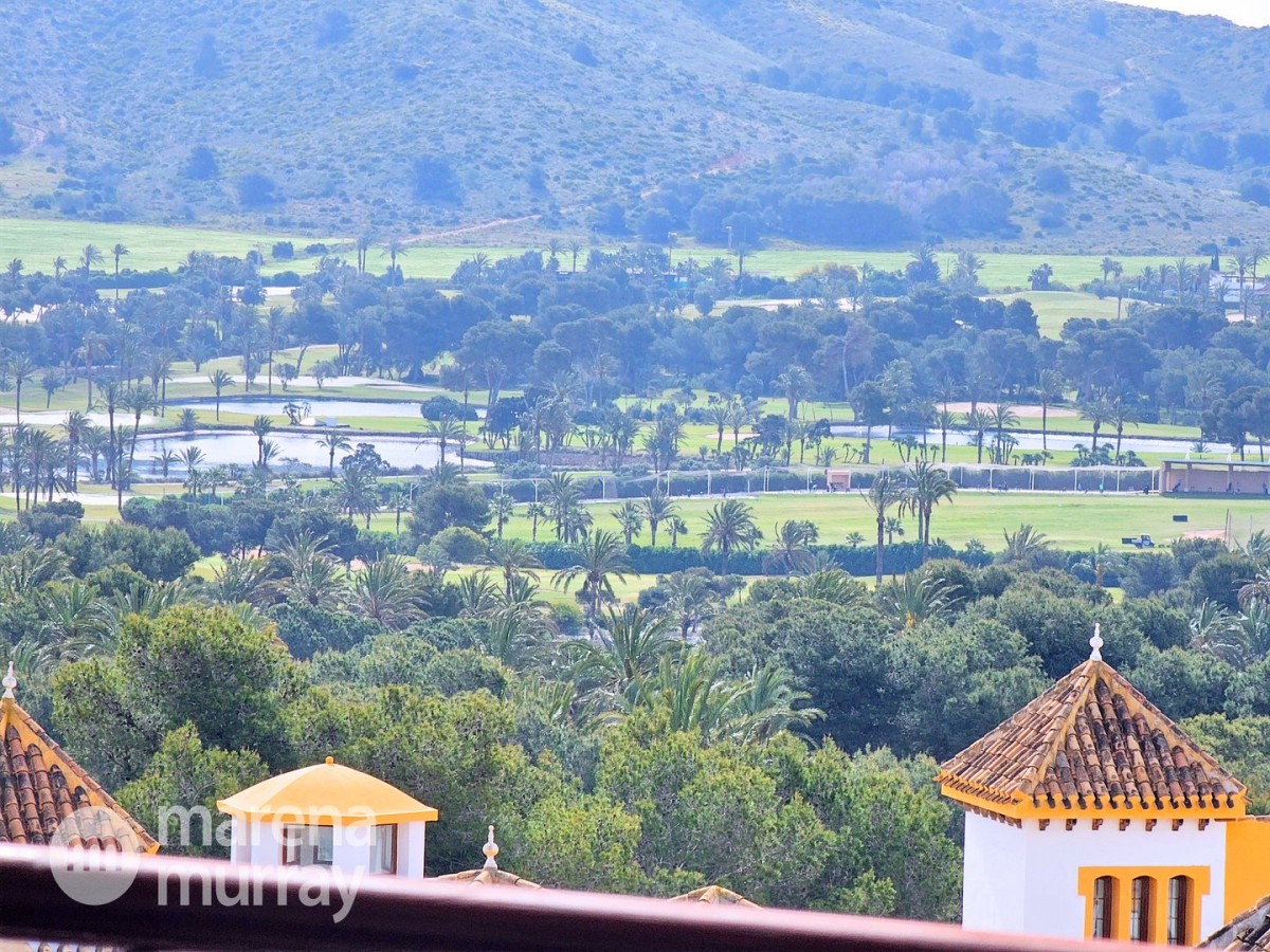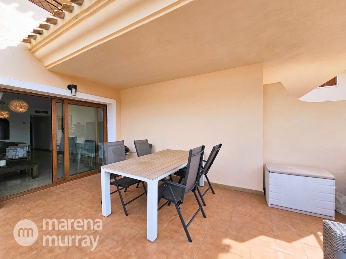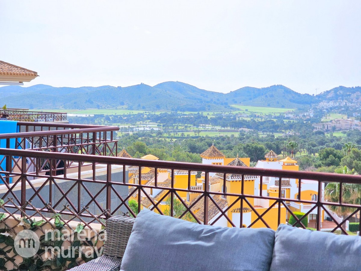 Do not miss the opportunity to view this duplex apartment set in a high position on the North side of La Manga Club. Buena Vista is a development of luxury villas and apartments surrounding its own community pool, built in 2007. Boasting three bedrooms over two floors, one of them being on the main level, this apartment could be the ultimate summer house. The bright and combined lounge and dining area opens onto the main terrace, enjoying Las Lomas views and lovely afternoon sun and stunning views. There are two additional terraces accessible from the bedrooms, making the most of the Spanish weather won't be hard here! The fully equipped kitchen benefits from natural light coming from the terrace through the hatch. Close by there is a large free-form community pool and ample parking which adds to the convenience of these well-appointed properties. With central air conditioning, meticulously furnished, and quality finishes, viewing is highly recommended to appreciate this stunning property.