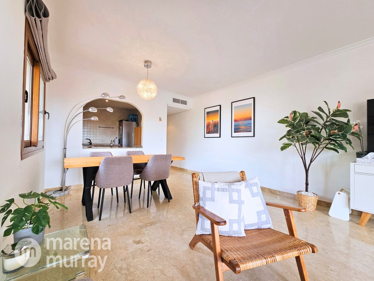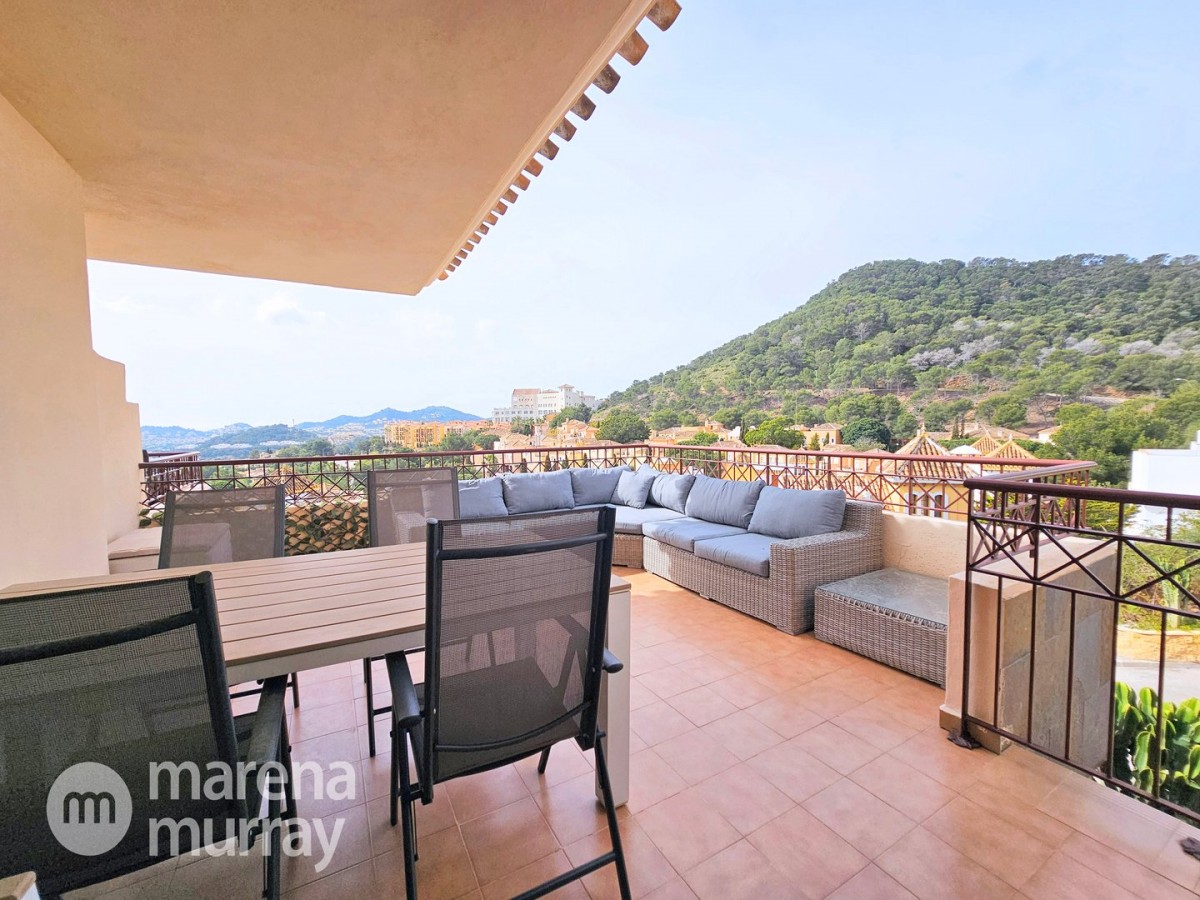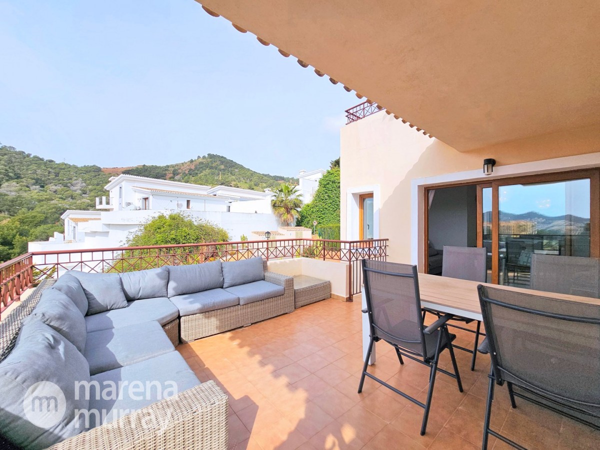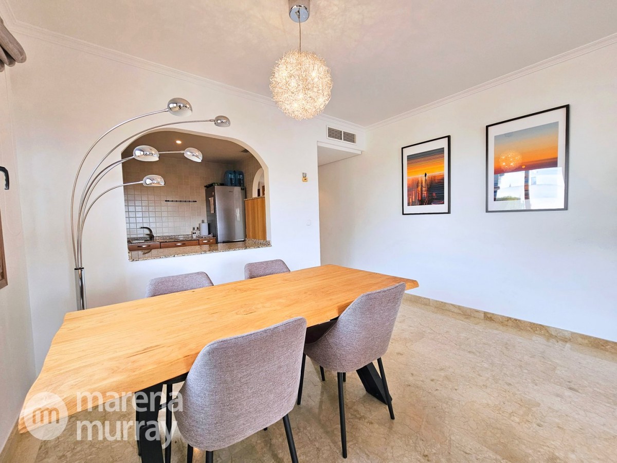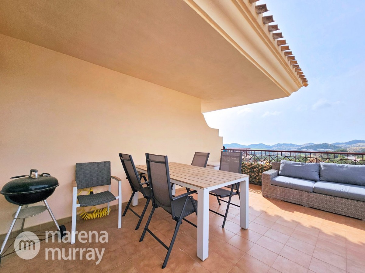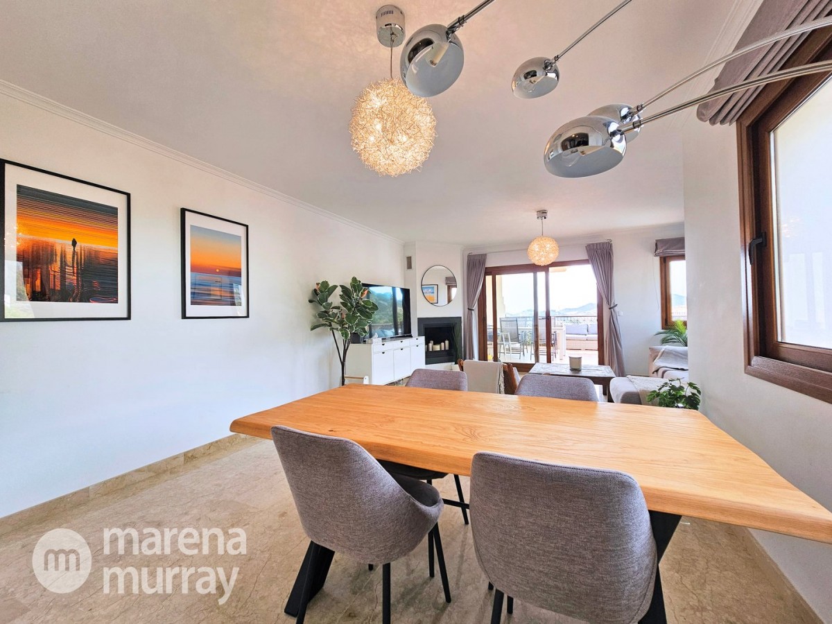 Do not miss the opportunity to view this duplex apartment set in a high position on the North side of La Manga Club. Buena Vista is a development of luxury villas and apartments surrounding its own community pool, built in 2007. Boasting three bedrooms over two floors, one of them being on the main level, this apartment could be the ultimate summer house. The bright and combined lounge and dining area opens onto the main terrace, enjoying Las Lomas views and lovely afternoon sun and stunning views. There are two additional terraces accessible from the bedrooms, making the most of the Spanish weather won't be hard here! The fully equipped kitchen benefits from natural light coming from the terrace through the hatch. Close by there is a large free-form community pool and ample parking which adds to the convenience of these well-appointed properties. With central air conditioning, meticulously furnished, and quality finishes, viewing is highly recommended to appreciate this stunning property.