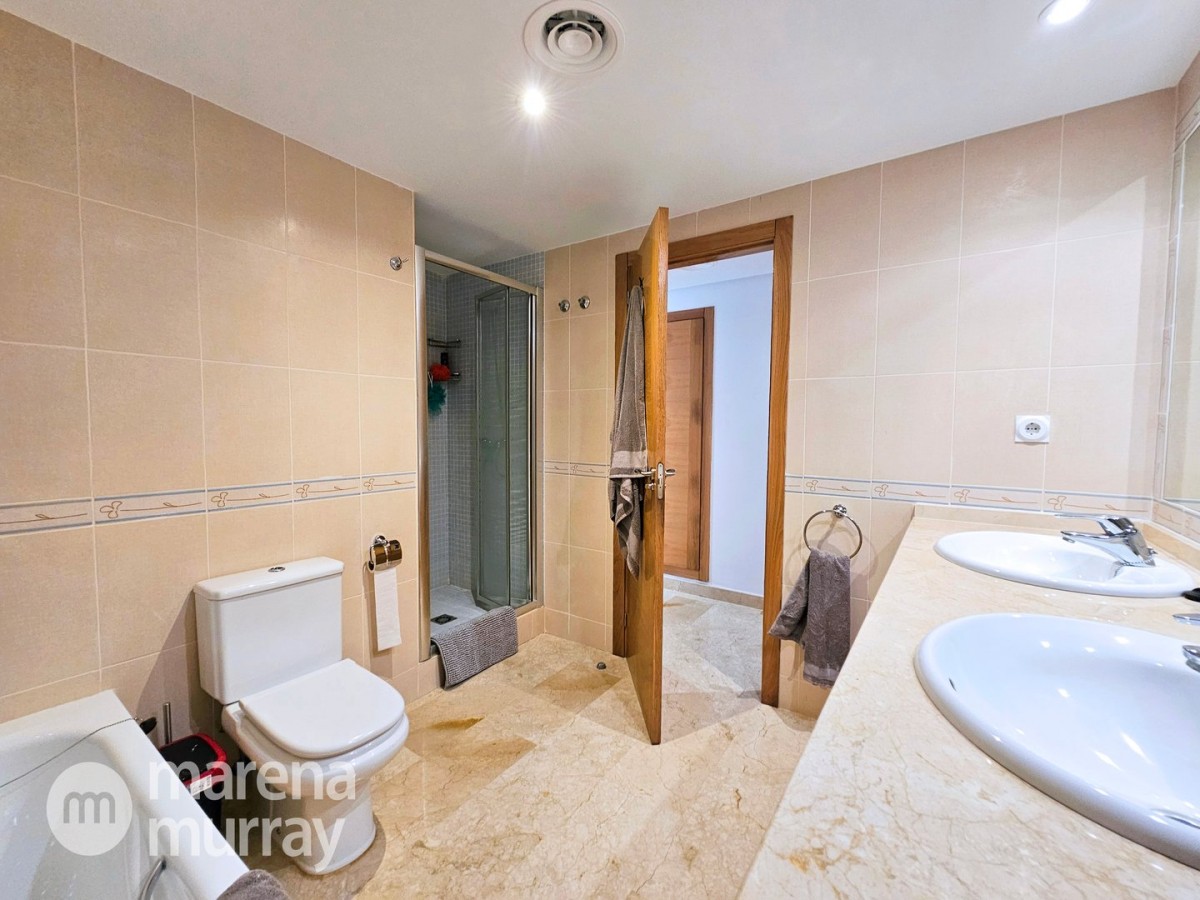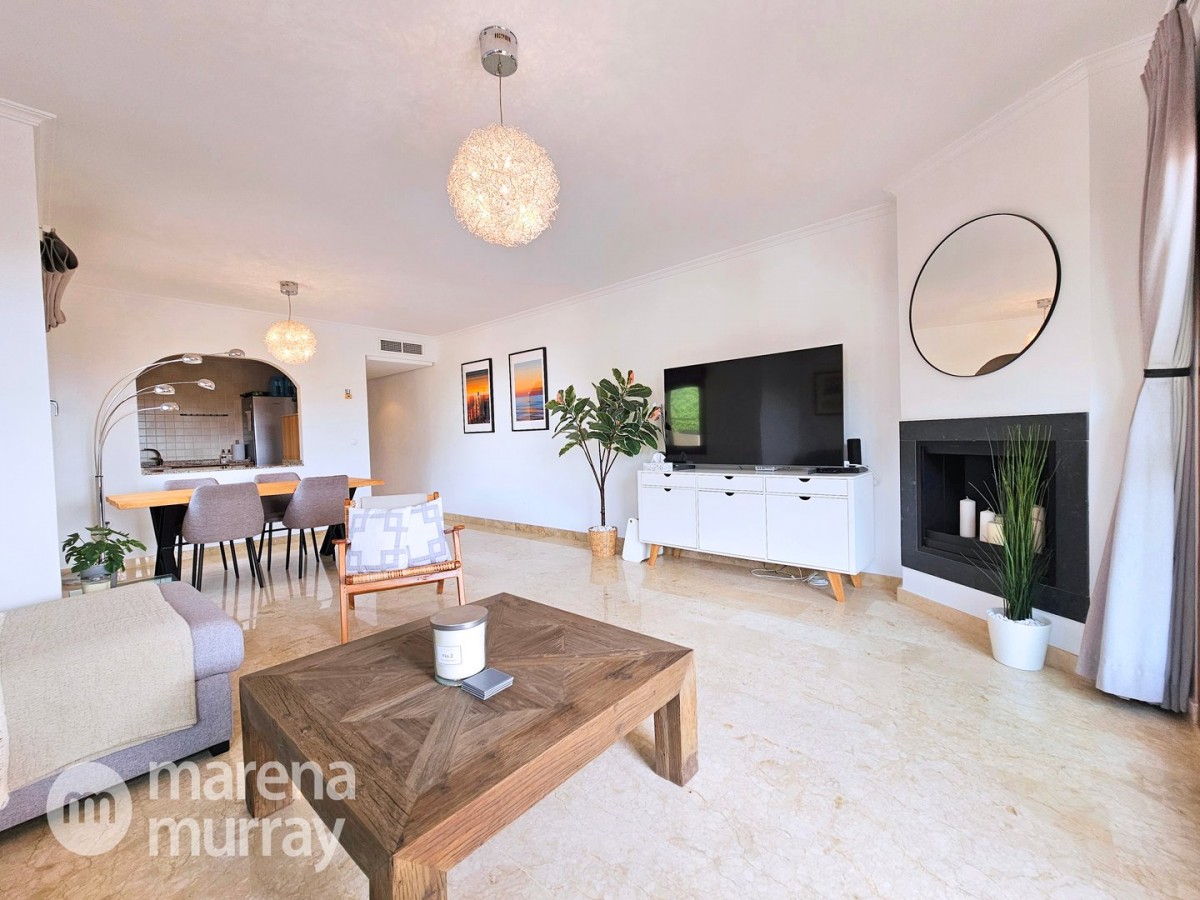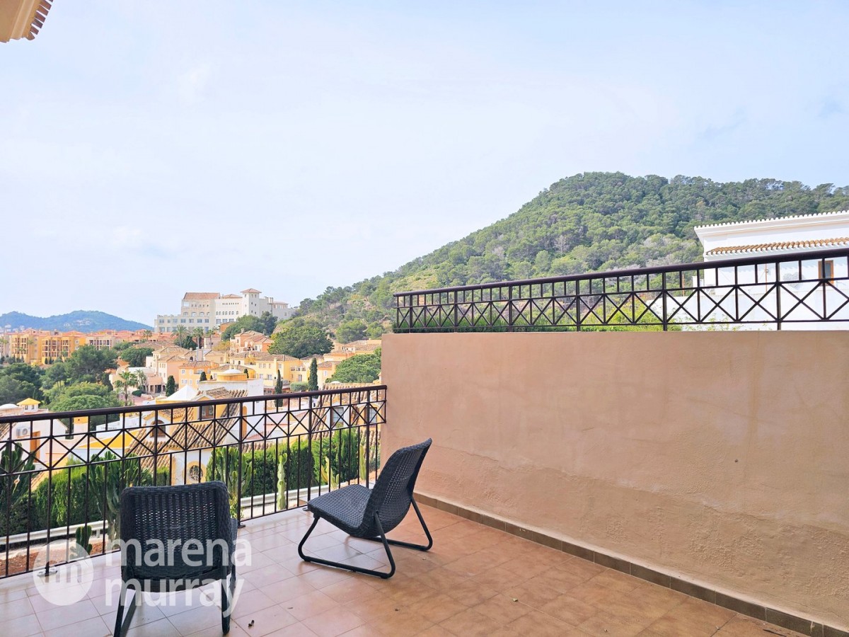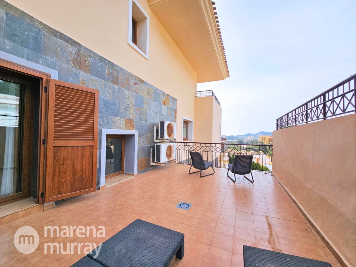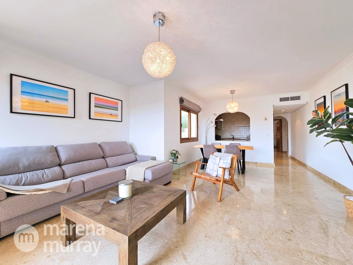 Do not miss the opportunity to view this duplex apartment set in a high position on the North side of La Manga Club. Buena Vista is a development of luxury villas and apartments surrounding its own community pool, built in 2007. Boasting three bedrooms over two floors, one of them being on the main level, this apartment could be the ultimate summer house. The bright and combined lounge and dining area opens onto the main terrace, enjoying Las Lomas views and lovely afternoon sun and stunning views. There are two additional terraces accessible from the bedrooms, making the most of the Spanish weather won't be hard here! The fully equipped kitchen benefits from natural light coming from the terrace through the hatch. Close by there is a large free-form community pool and ample parking which adds to the convenience of these well-appointed properties. With central air conditioning, meticulously furnished, and quality finishes, viewing is highly recommended to appreciate this stunning property.