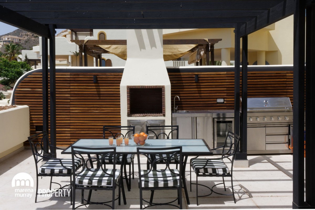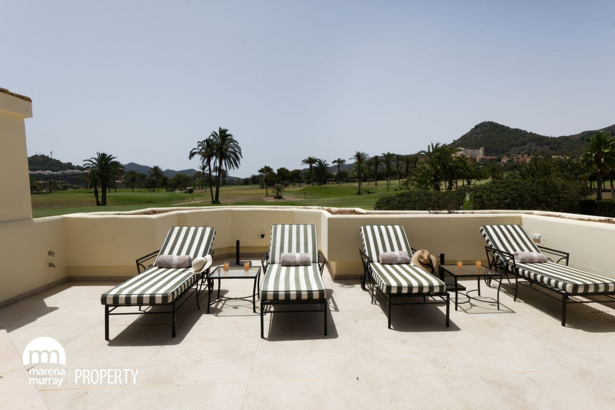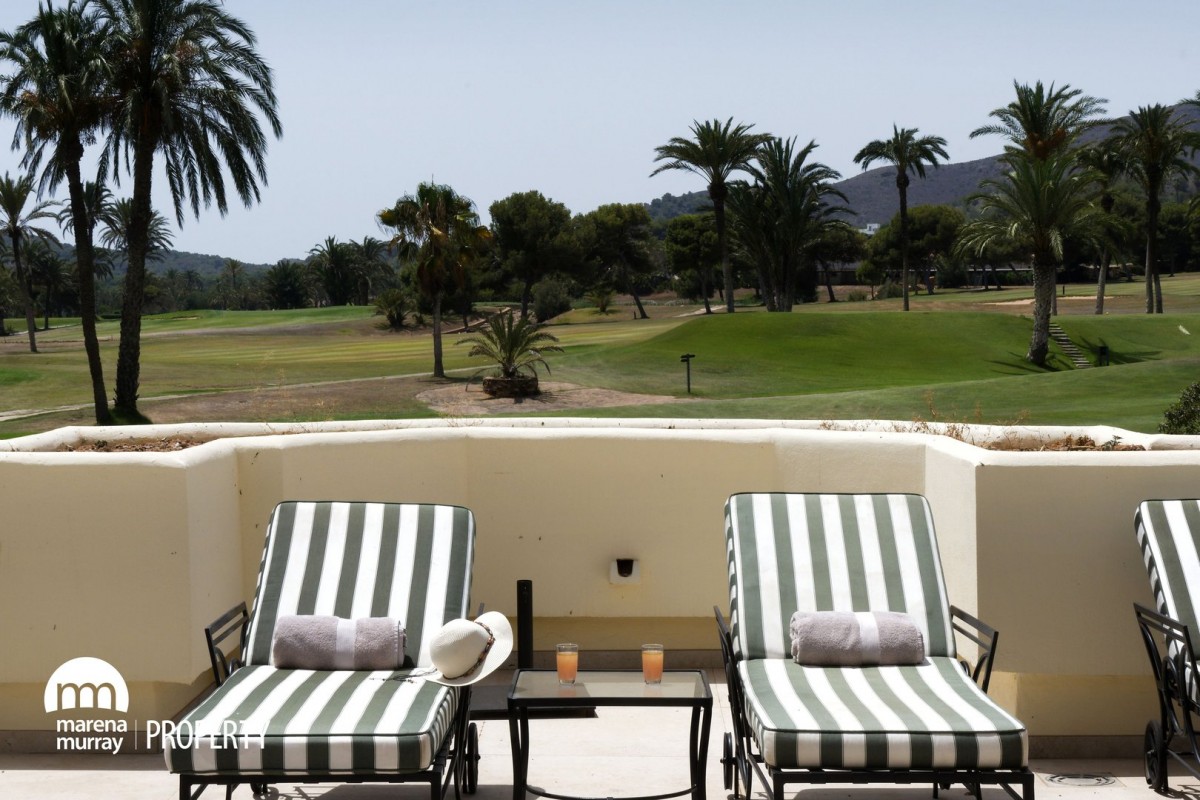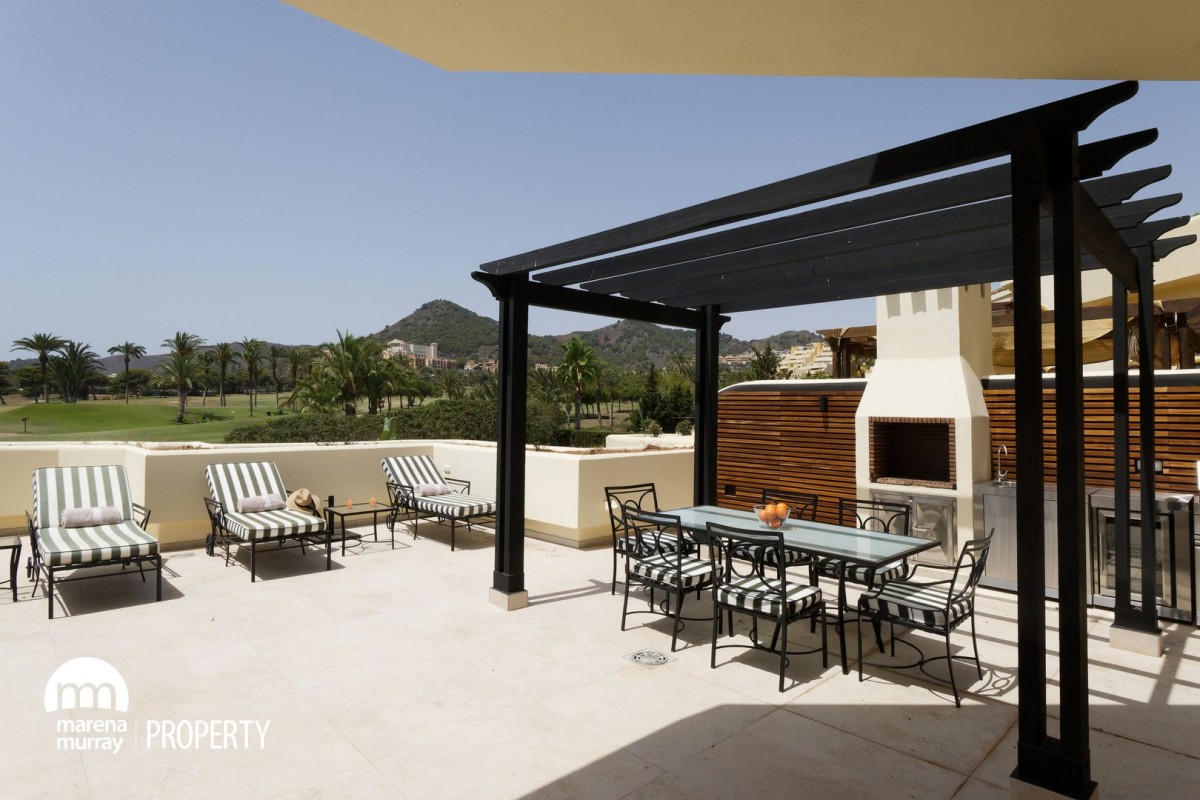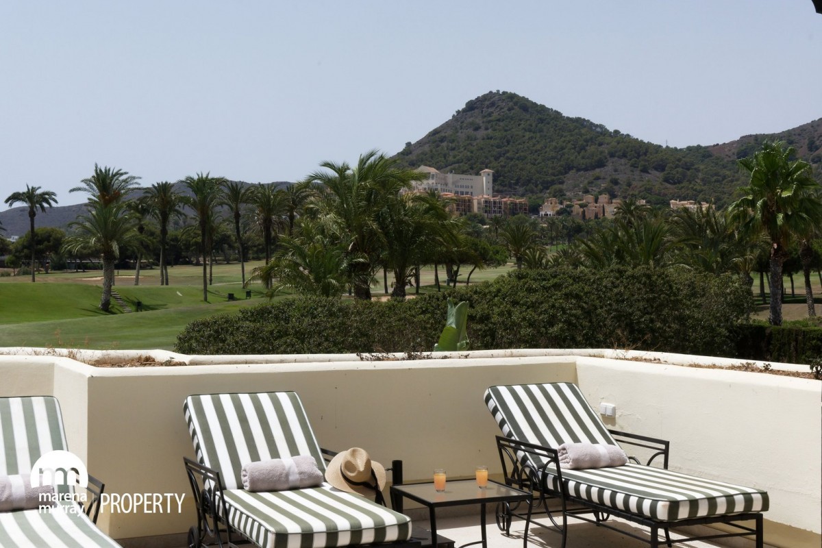 Located in the quiet community of Coto del Golf community at La Manga Club, this 3 bedroom, 3 bedroom apartment offers comfort, space and privacy. All the bedrooms have their own ensuite, hi spec bathrooms, two of which open out onto the large, south facing terrace, which ensures year round sun. With views of the north course, private pool and well equipped outdoor kitchen, this offers the perfect setting for family gatherings and entertaining friends. The property features an open plan lounge, dining, kitchen area, with plenty of natural light and direct terrace access. Set in a peaceful corner of the resort within a small, gated community, it is just a short distance from La Manga club golf, tennis and leisure facilities. This would make an ideal permanant home or rental investment.