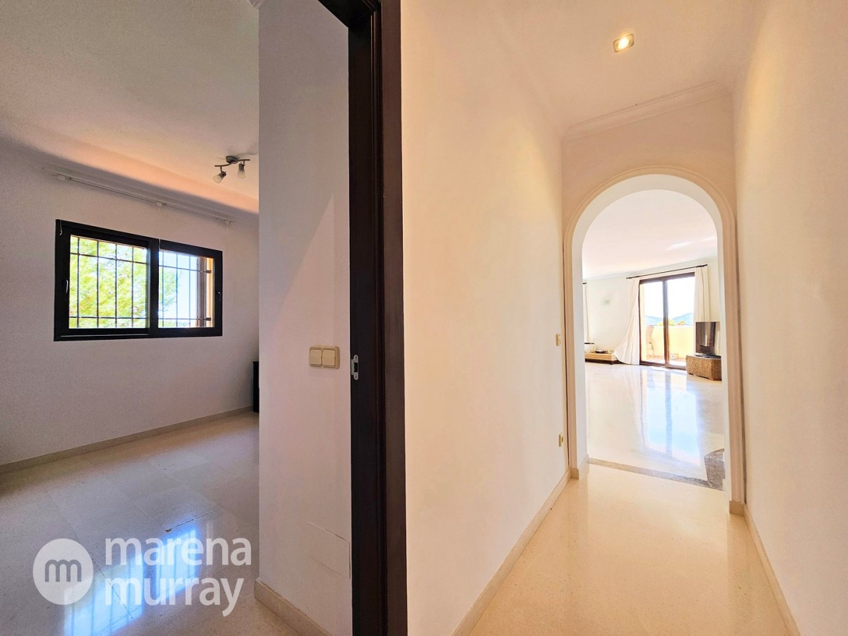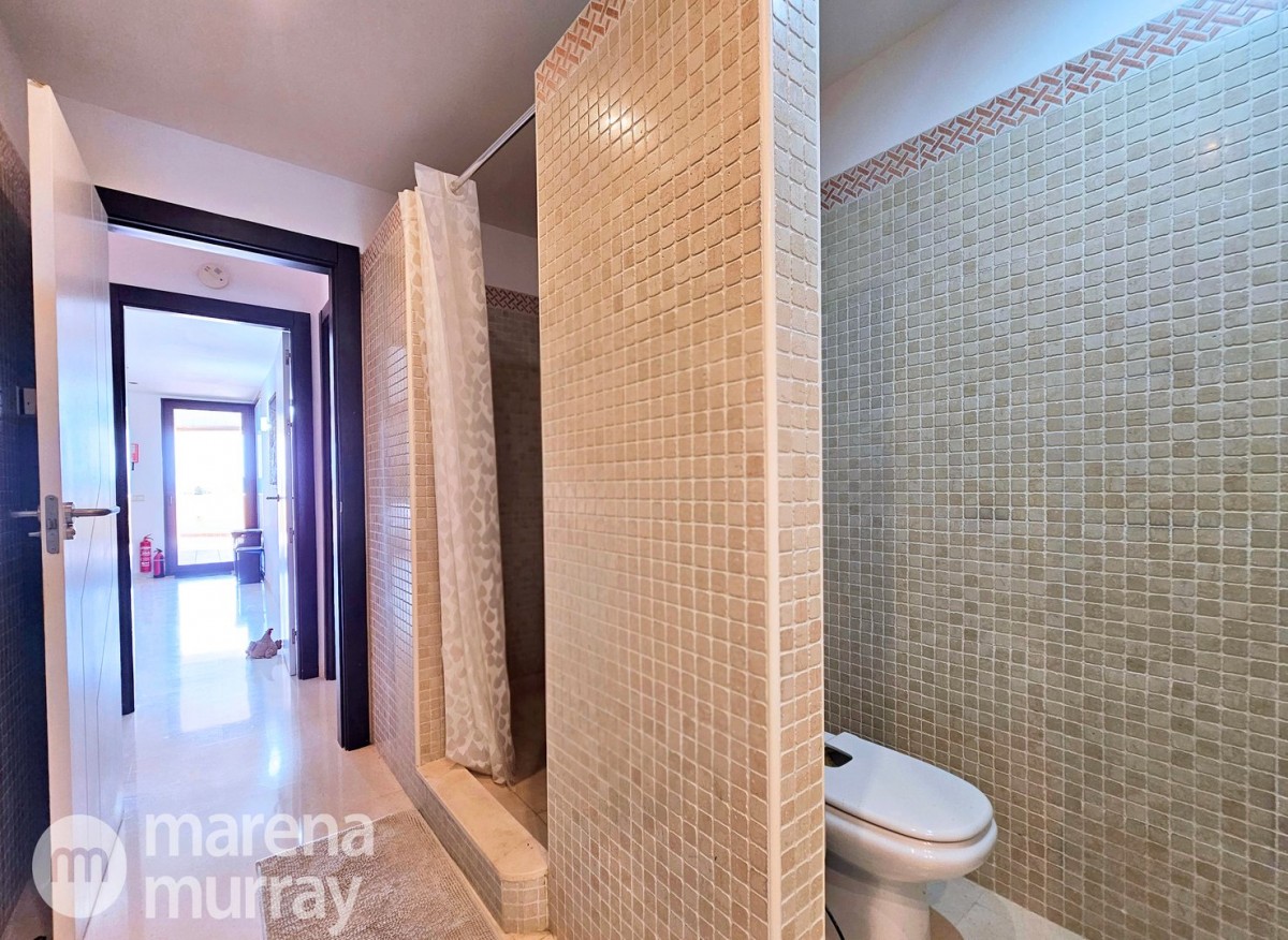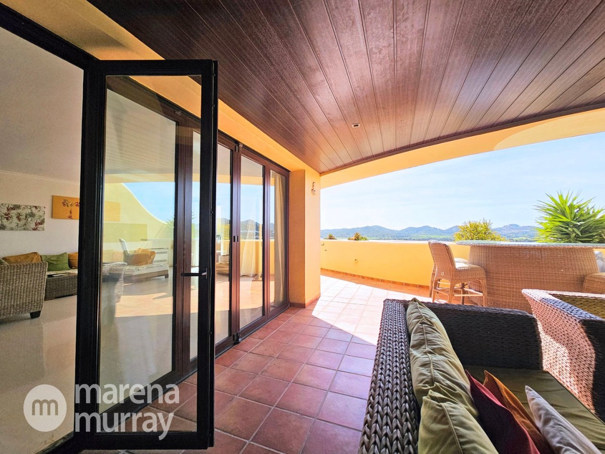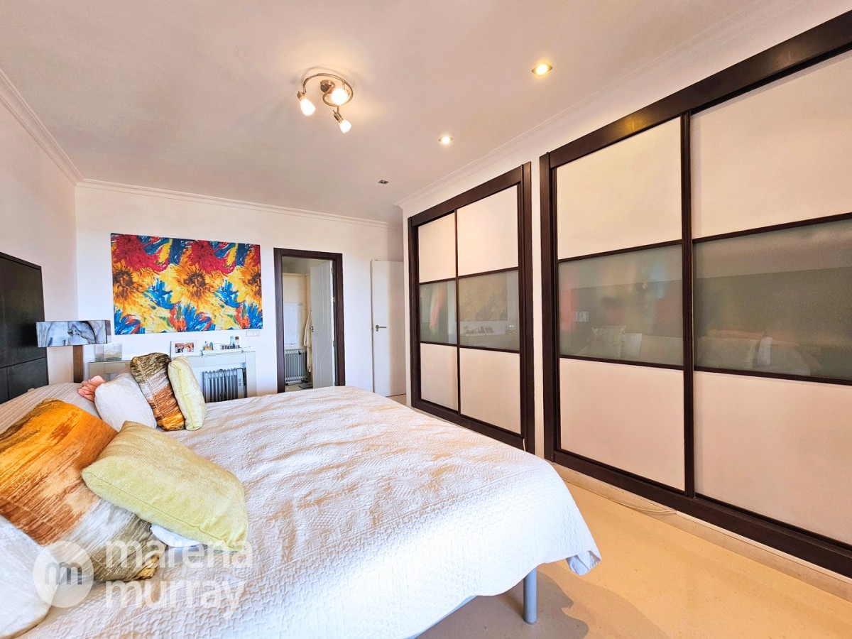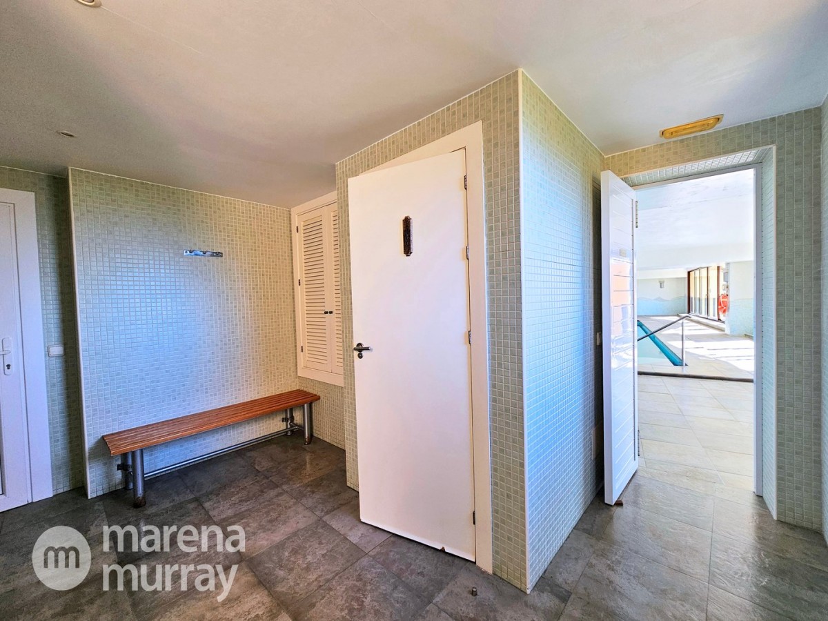 Perched at the top of the sought after Coto del Golf Terrazas community, this exceptional three bedroom, two bathroom apartment offers privacy, tranquility, and year round sunshine in the prestigious La Manga Club resort. Situated on the peaceful north side of the resort, the property enjoys the warmth of the winter sun while benefiting from a quiet residential setting and the intimacy of a small, well maintained community. The spacious interior is designed for comfort and effortless indoor outdoor living. The bright and airy living area is flooded with natural light through sliding doors that open directly onto a generous south facing sun terrace, the perfect space for relaxing, dining, and enjoying the beautiful golf course surroundings. The well appointed kitchen offers ample storage and generous workspace, ideal for entertaining guests. With direct access to the terrace, serving friends and family is both easy and enjoyable. The apartment comprises three good sized bedrooms and two bathrooms. The master suite features an ensuite bathroom and elegant French doors that open onto the south-facing terrace, allowing you to wake up to sunshine and golf views. Additional features include two allocated indoor parking spaces, with the flexibility to create a storage area within one space. Residents also enjoy access to a superb indoor heated swimming pool, complete with separate male and female changing facilities, all set against spectacular views of the golf course. This top floor residence combines privacy, light filled living spaces, and excellent amenities in one of La Manga Club’s most desirable communities, an ideal permanent home, or winter retreat.