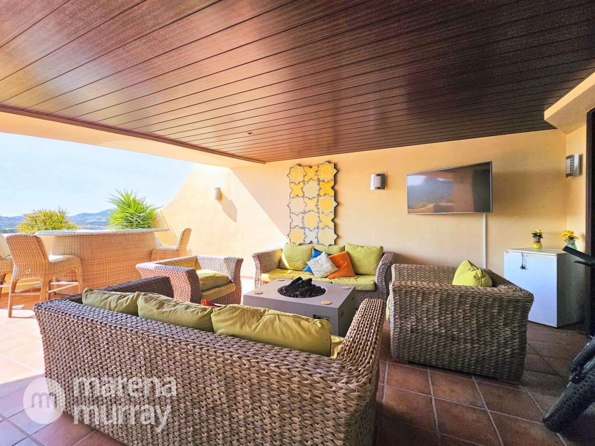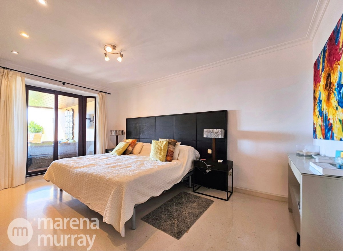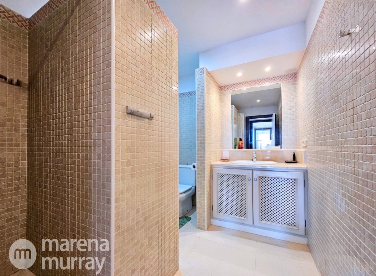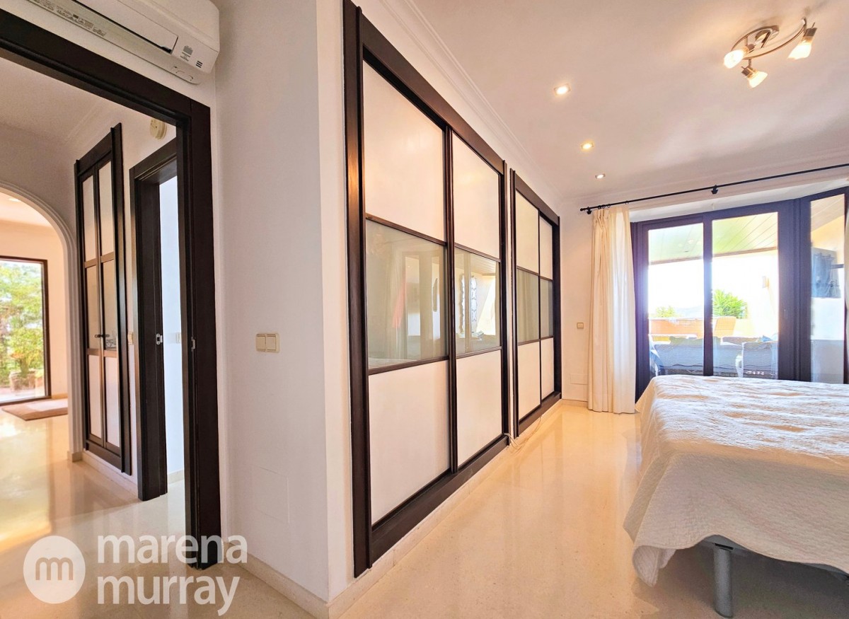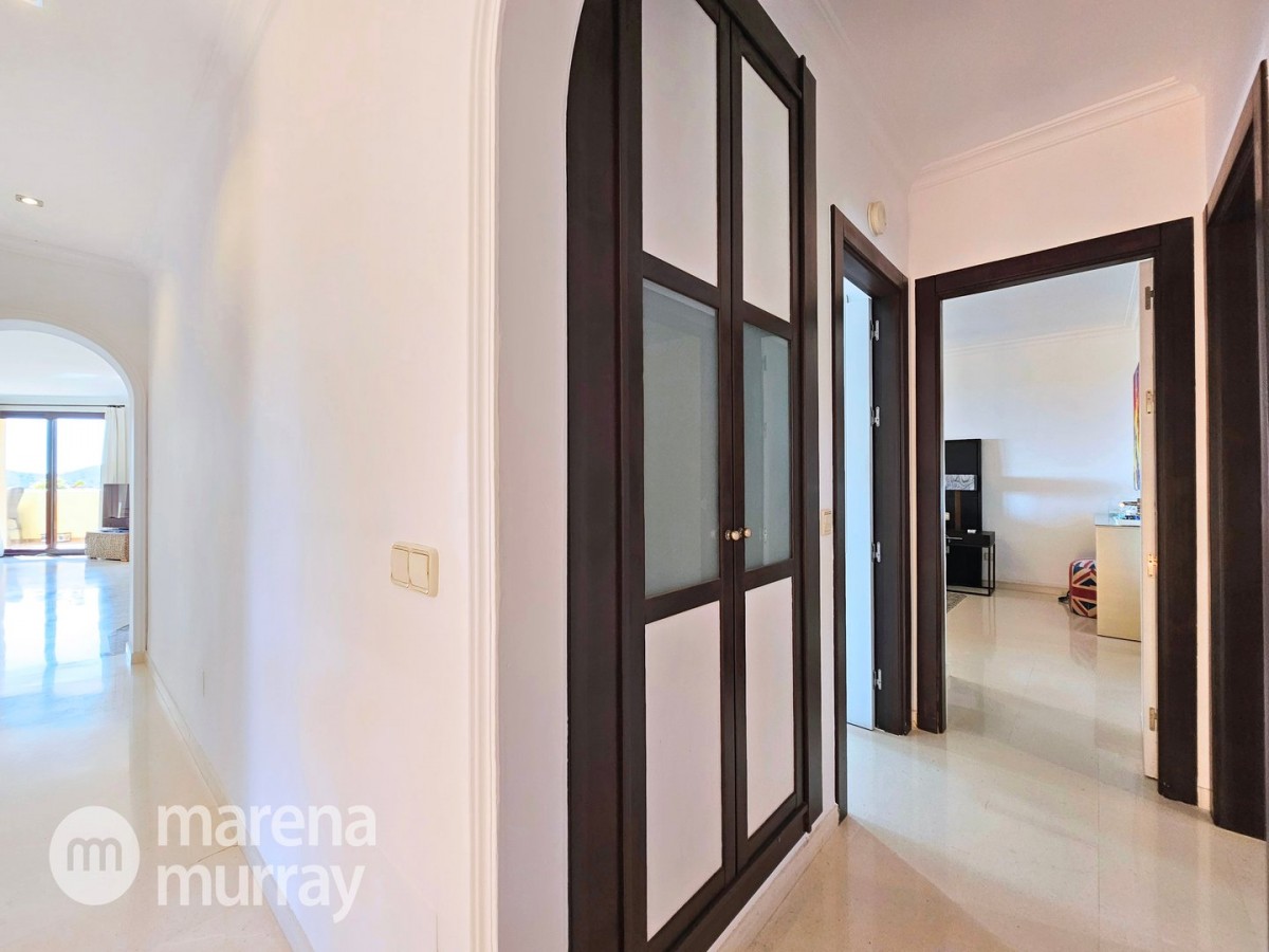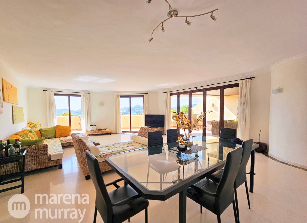 Perched at the top of the sought after Coto del Golf Terrazas community, this exceptional three bedroom, two bathroom apartment offers privacy, tranquility, and year round sunshine in the prestigious La Manga Club resort. Situated on the peaceful north side of the resort, the property enjoys the warmth of the winter sun while benefiting from a quiet residential setting and the intimacy of a small, well maintained community. The spacious interior is designed for comfort and effortless indoor outdoor living. The bright and airy living area is flooded with natural light through sliding doors that open directly onto a generous south facing sun terrace, the perfect space for relaxing, dining, and enjoying the beautiful golf course surroundings. The well appointed kitchen offers ample storage and generous workspace, ideal for entertaining guests. With direct access to the terrace, serving friends and family is both easy and enjoyable. The apartment comprises three good sized bedrooms and two bathrooms. The master suite features an ensuite bathroom and elegant French doors that open onto the south-facing terrace, allowing you to wake up to sunshine and golf views. Additional features include two allocated indoor parking spaces, with the flexibility to create a storage area within one space. Residents also enjoy access to a superb indoor heated swimming pool, complete with separate male and female changing facilities, all set against spectacular views of the golf course. This top floor residence combines privacy, light filled living spaces, and excellent amenities in one of La Manga Club’s most desirable communities, an ideal permanent home, or winter retreat.