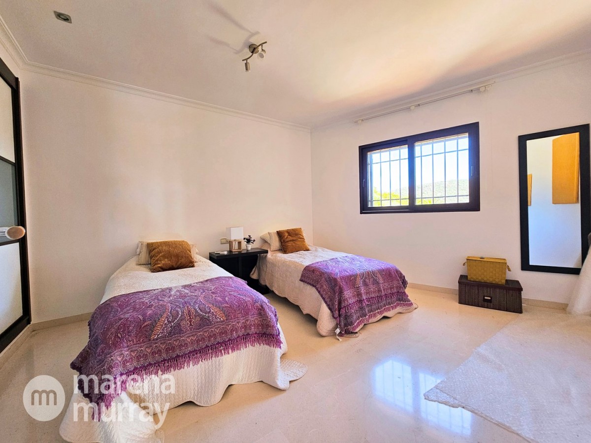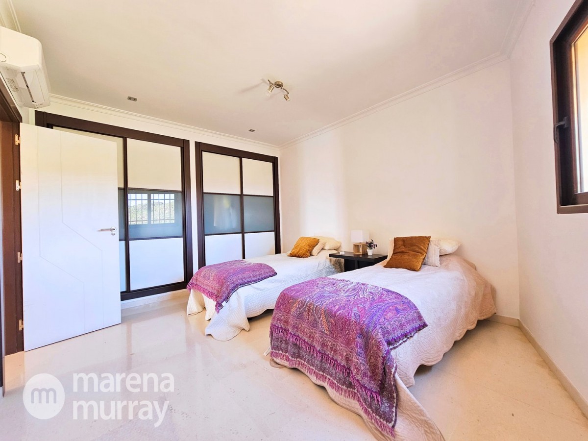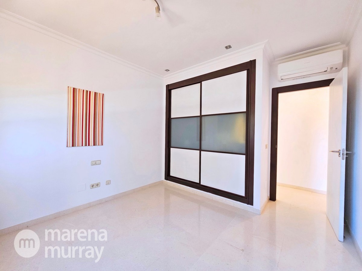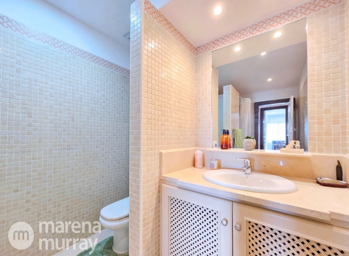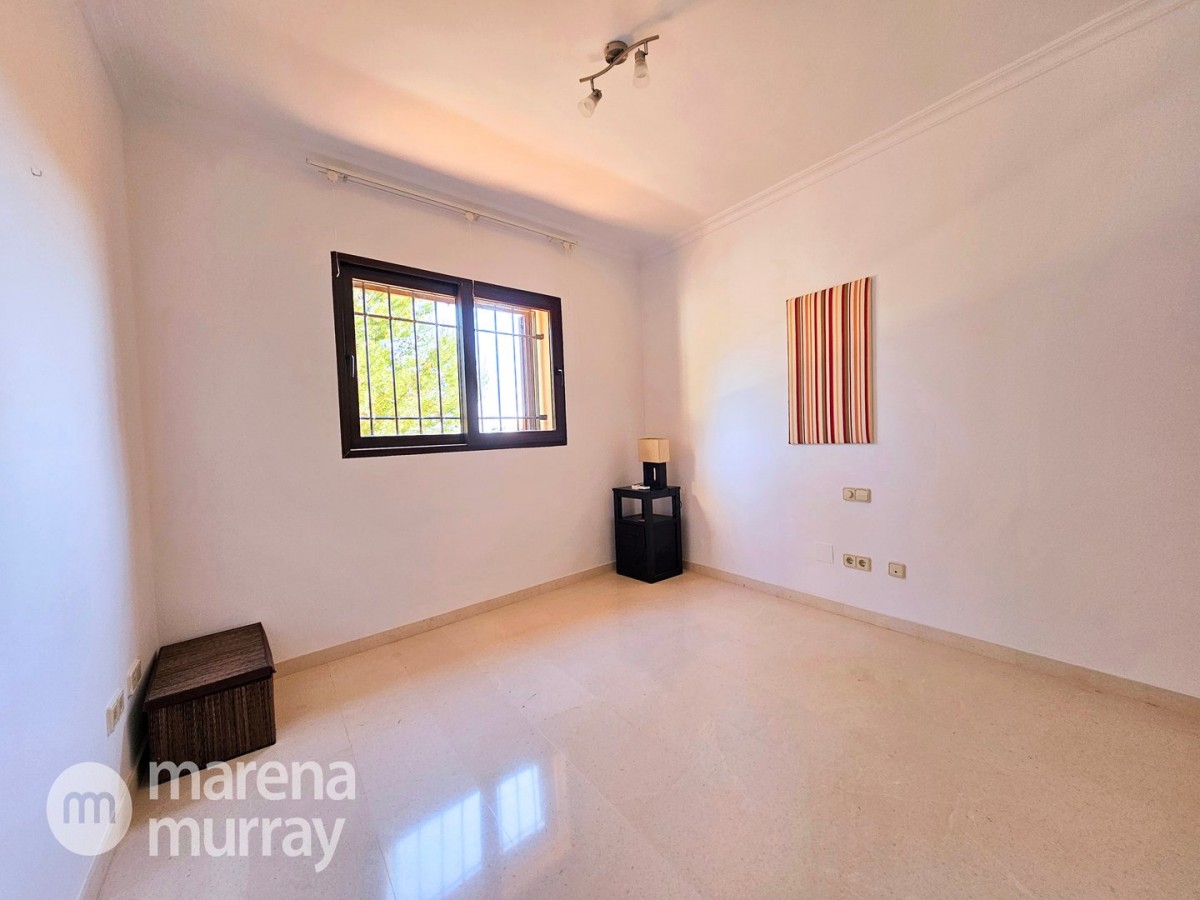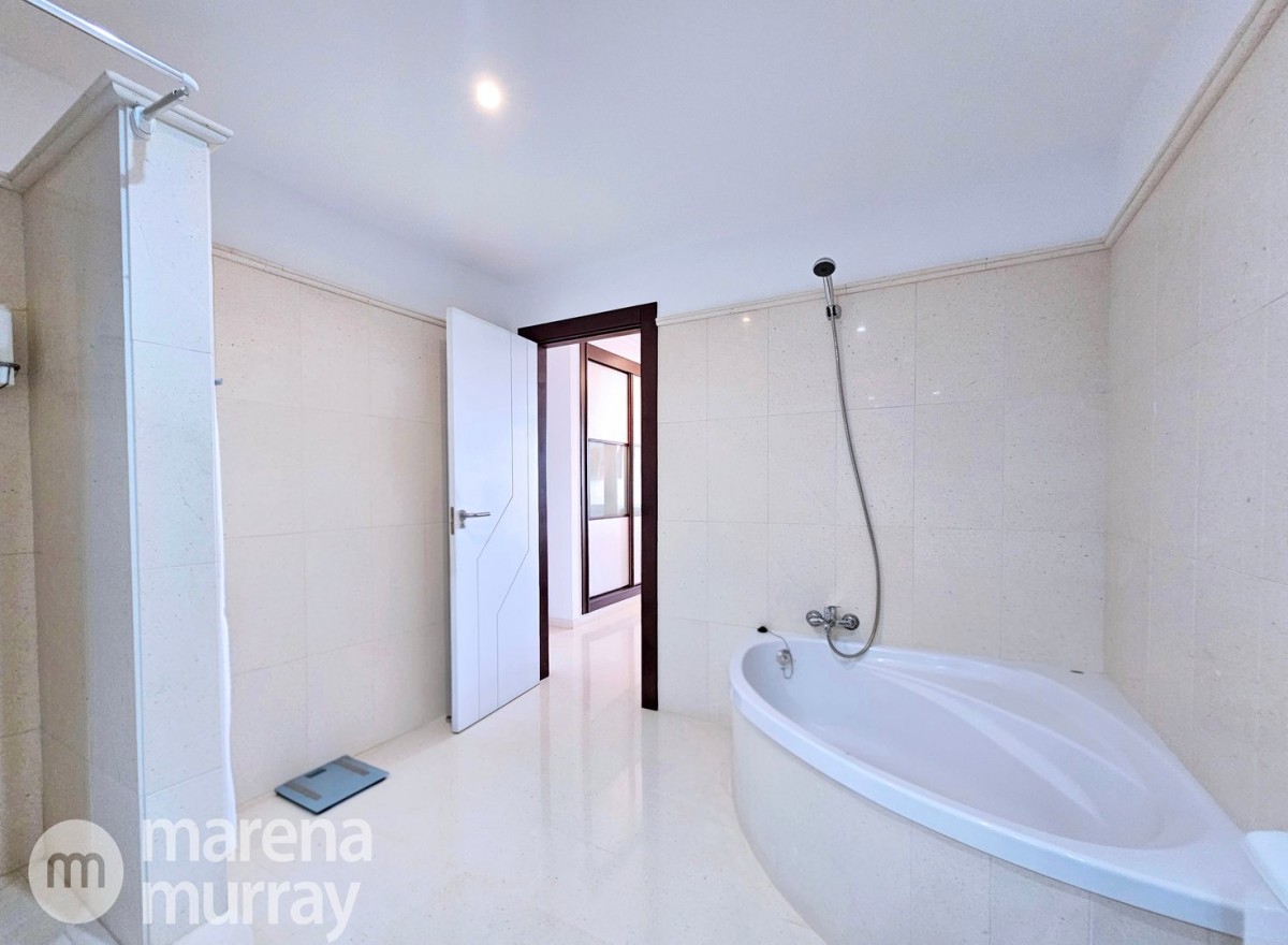 Perched at the top of the sought after Coto del Golf Terrazas community, this exceptional three bedroom, two bathroom apartment offers privacy, tranquility, and year round sunshine in the prestigious La Manga Club resort. Situated on the peaceful north side of the resort, the property enjoys the warmth of the winter sun while benefiting from a quiet residential setting and the intimacy of a small, well maintained community. The spacious interior is designed for comfort and effortless indoor outdoor living. The bright and airy living area is flooded with natural light through sliding doors that open directly onto a generous south facing sun terrace, the perfect space for relaxing, dining, and enjoying the beautiful golf course surroundings. The well appointed kitchen offers ample storage and generous workspace, ideal for entertaining guests. With direct access to the terrace, serving friends and family is both easy and enjoyable. The apartment comprises three good sized bedrooms and two bathrooms. The master suite features an ensuite bathroom and elegant French doors that open onto the south-facing terrace, allowing you to wake up to sunshine and golf views. Additional features include two allocated indoor parking spaces, with the flexibility to create a storage area within one space. Residents also enjoy access to a superb indoor heated swimming pool, complete with separate male and female changing facilities, all set against spectacular views of the golf course. This top floor residence combines privacy, light filled living spaces, and excellent amenities in one of La Manga Club’s most desirable communities, an ideal permanent home, or winter retreat.