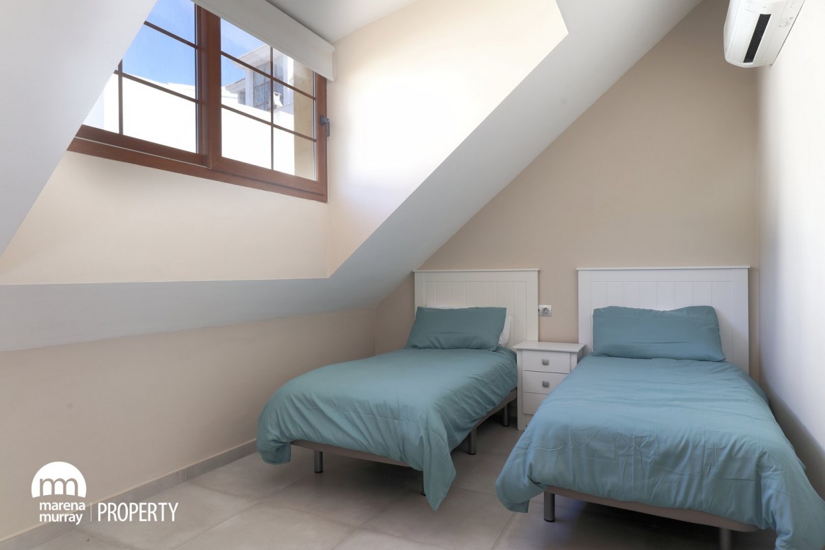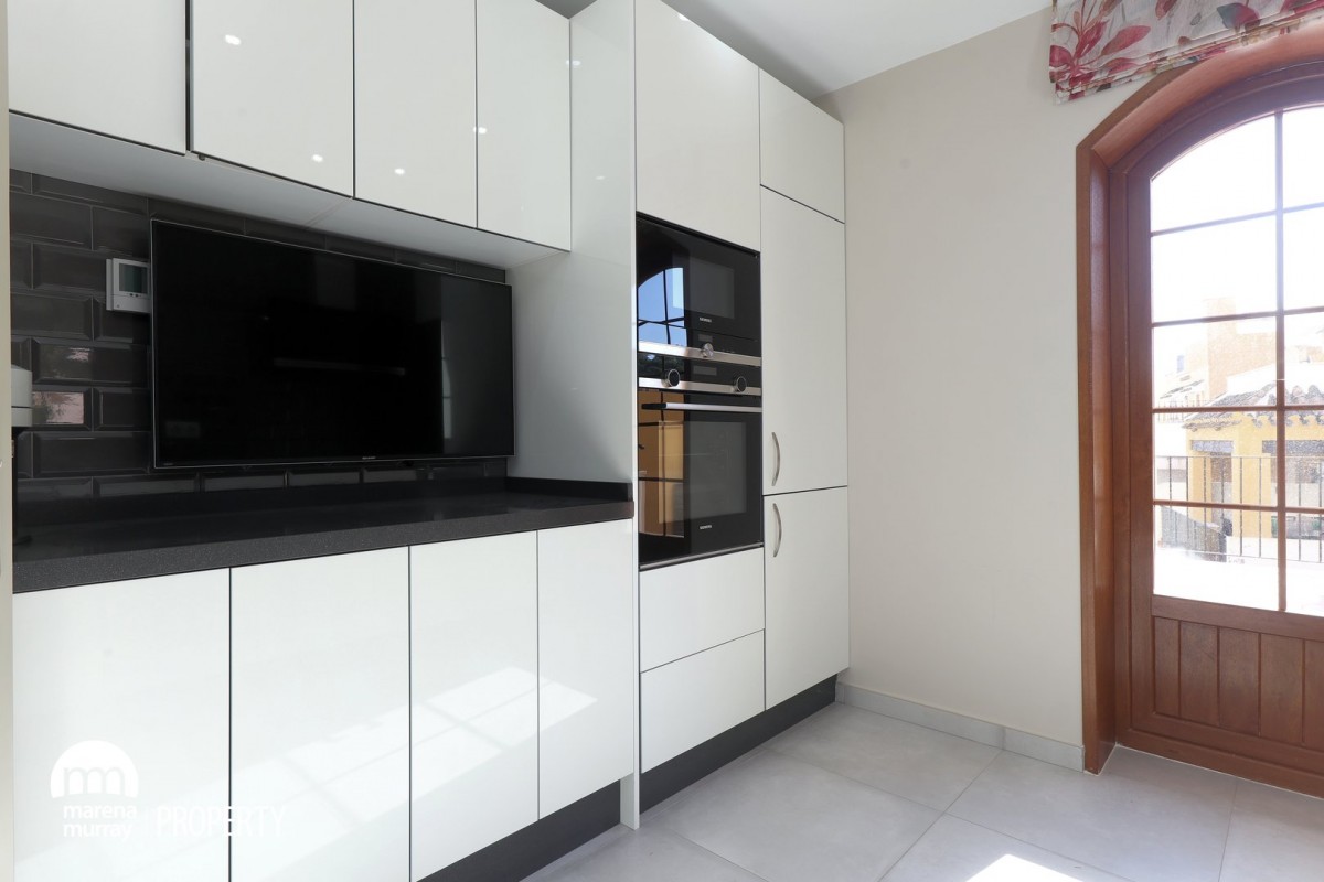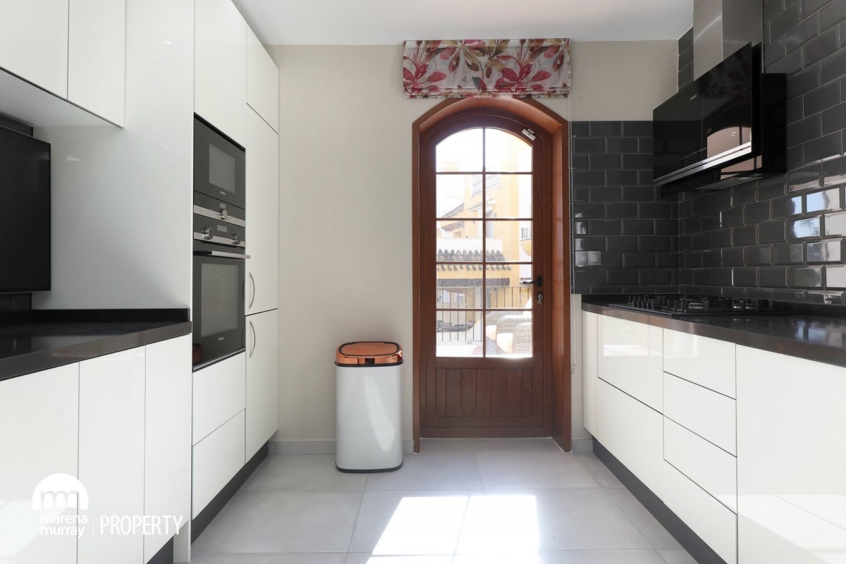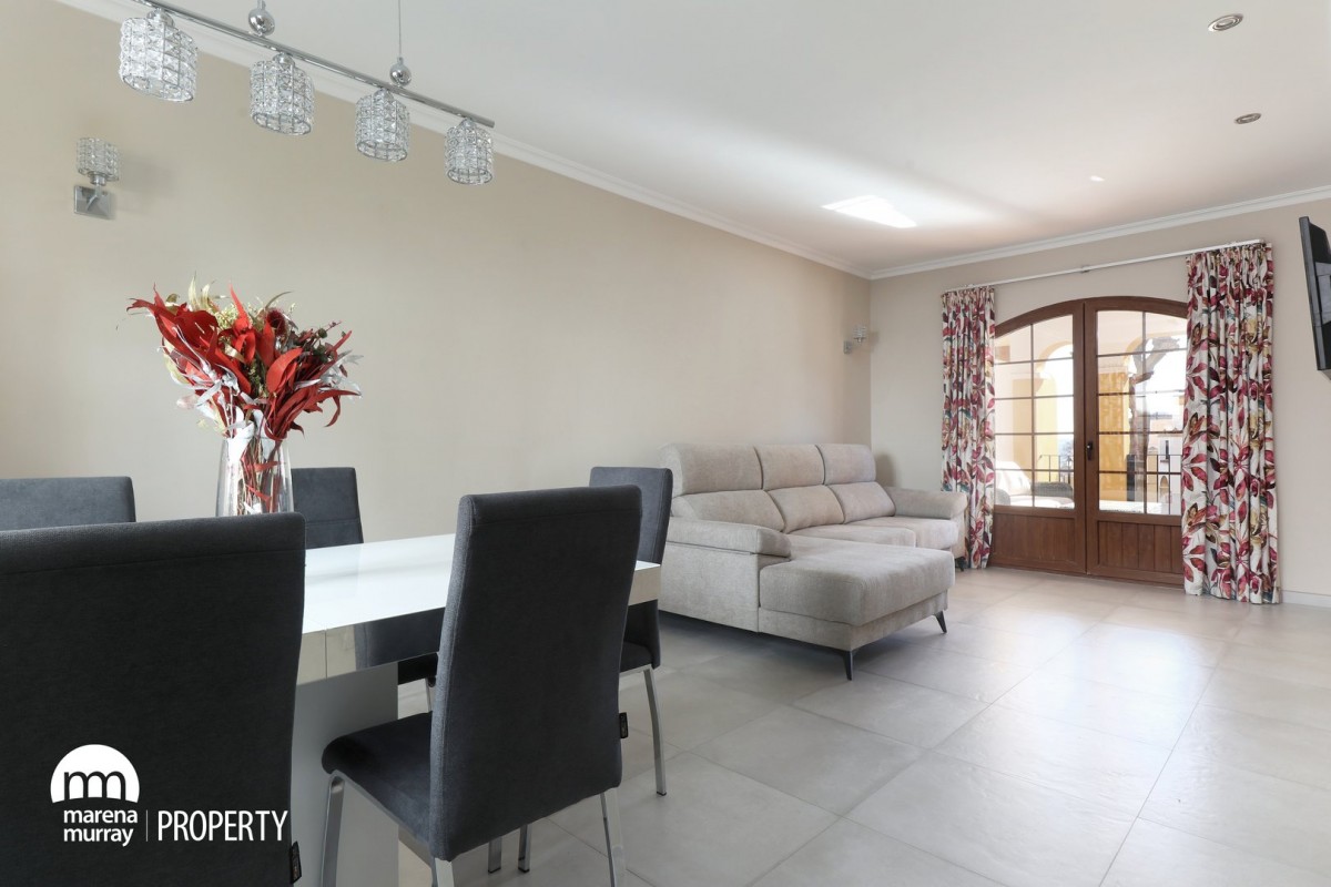 Don’t miss this spectacular townhouse, located in the peaceful and quiet community of Atalayas I. The pristine and luxurious kitchen has access to the terrace, as well as the lounge, where you will want to spend almost all day and night, enjoying the enviable weather and atmosphere that this community is famous for. Distributed over three levels, the property boasts three good size bedrooms, two of them on the first floor, one of which being the master bedroom enjoying its own terrace and ensuite, which will create a desirable sense of privacy and quietness that many would appreciate. We can find the third one on the upper level, next to the top terrace, which enjoys beautiful views all over the community pools and gardens. This is an extraordinary example of a well-maintained house, as its immaculate conditions are a big bonus for those looking for a turn-key property worth of a viewing!