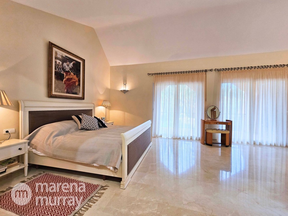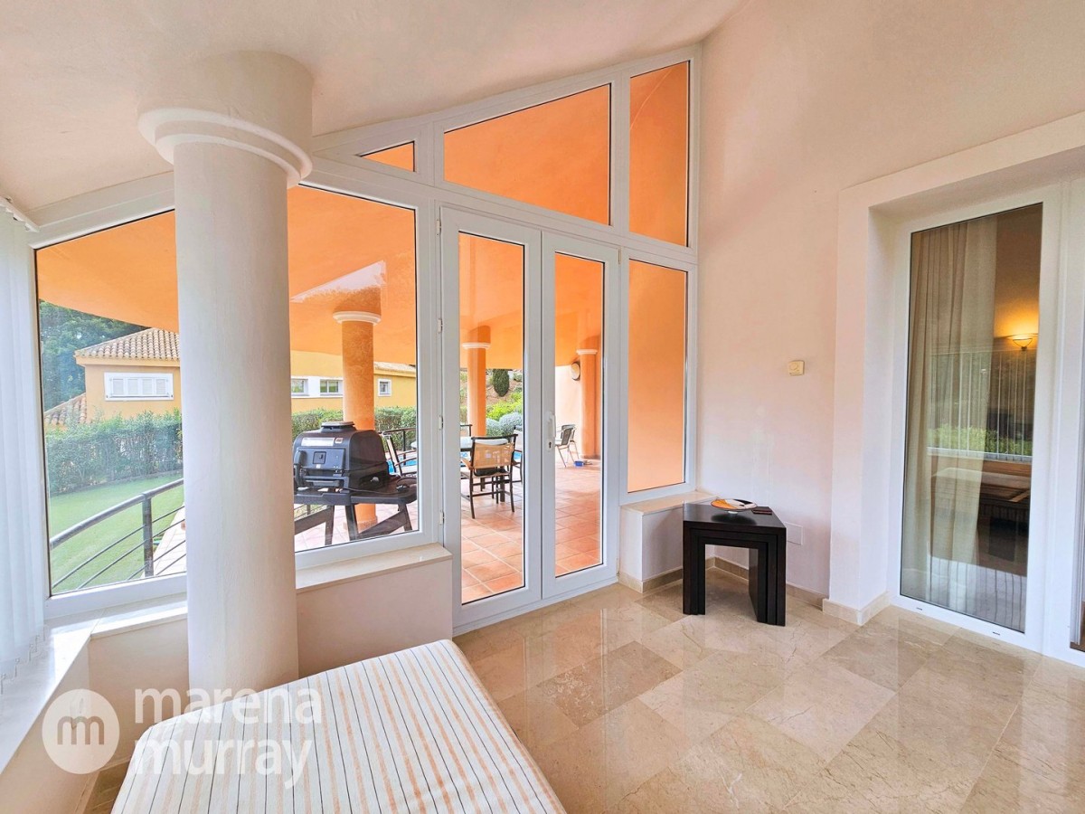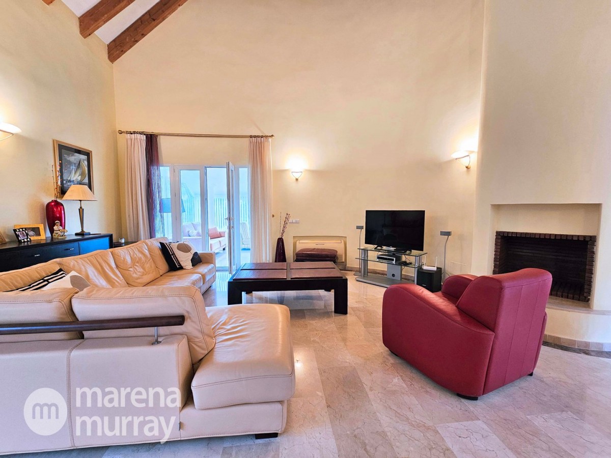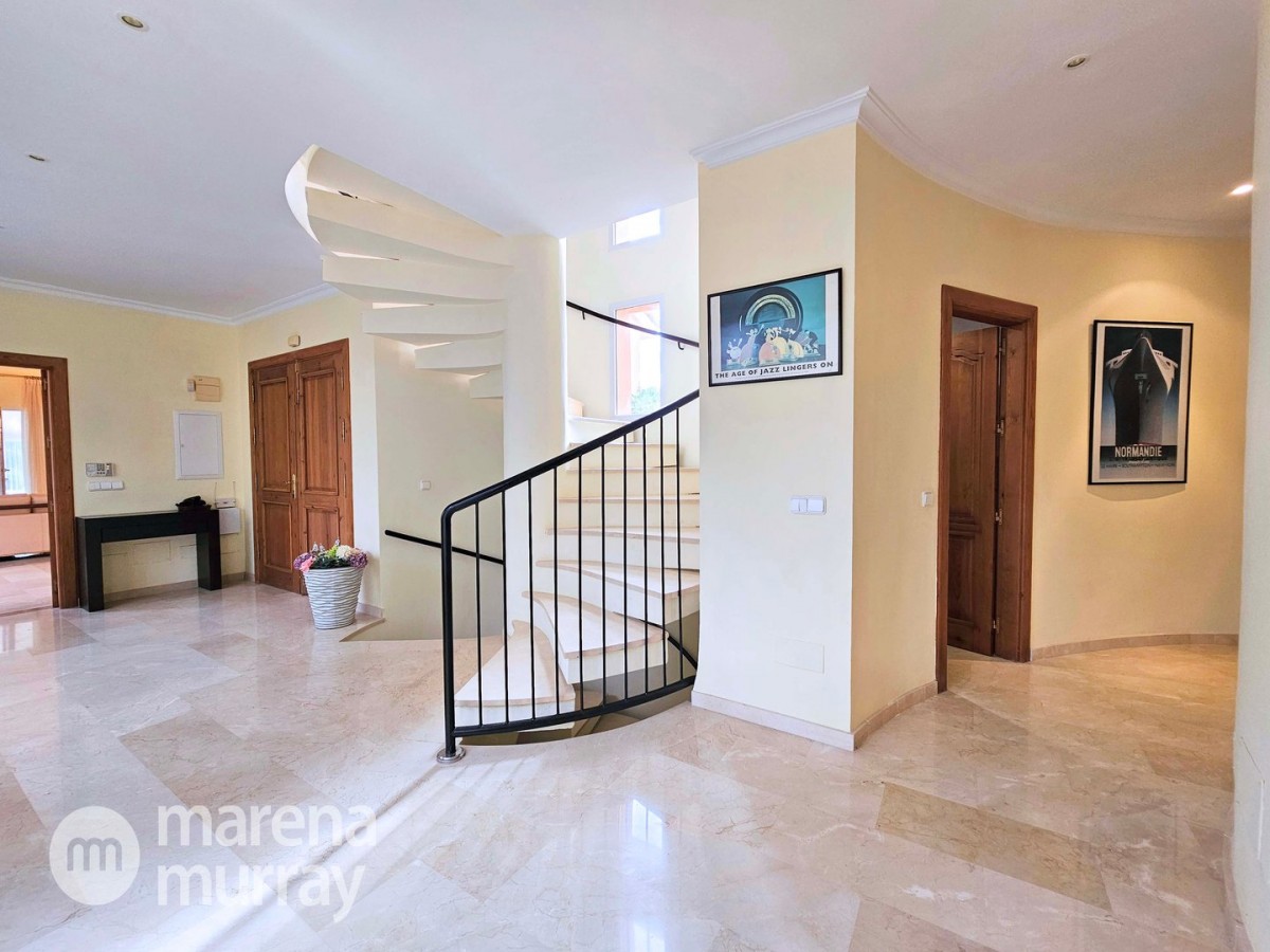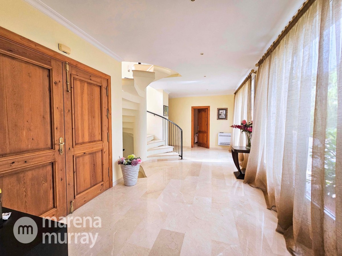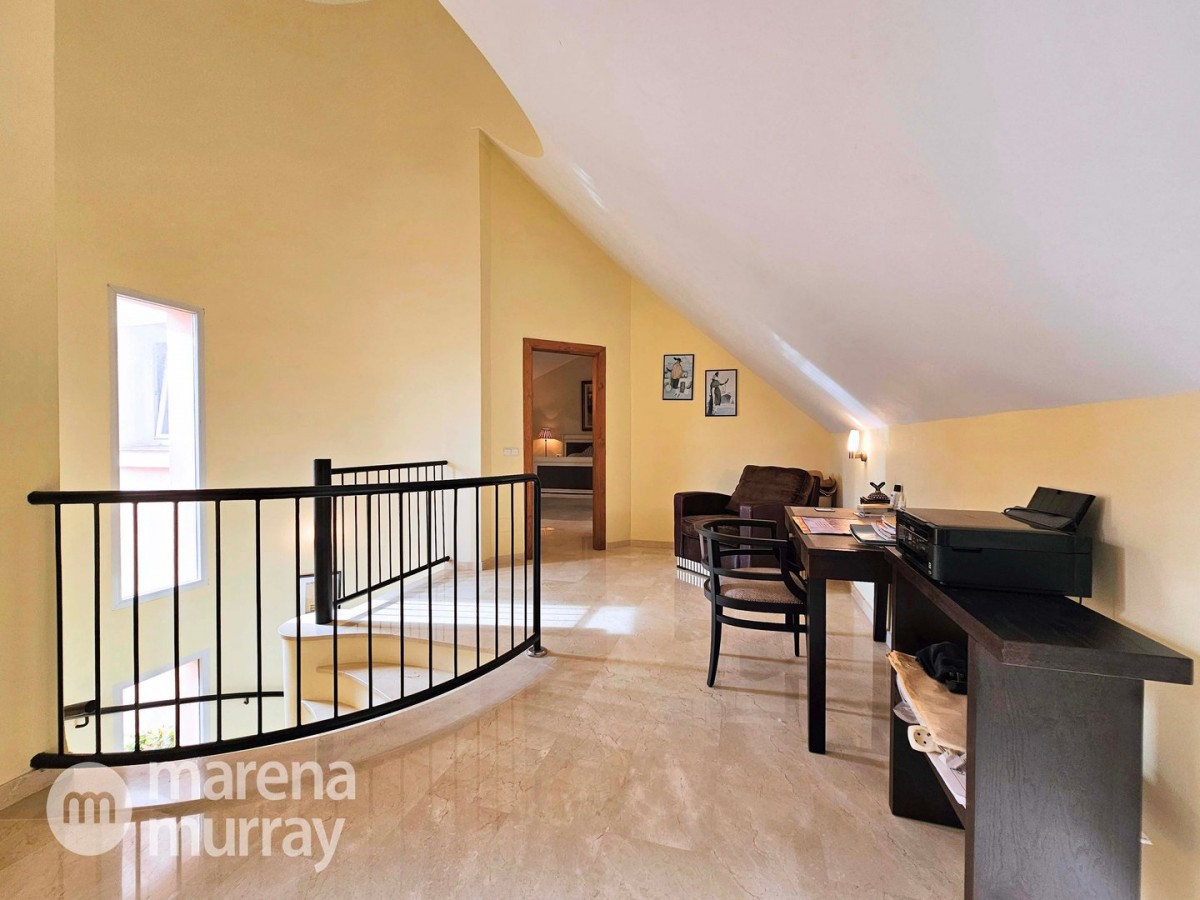 Exclusive Elegant Villa on the Prestigious North Golf Course Nestled within a spectacular private enclave overlooking the stunning North Golf Course, this exceptional villa offers a rare blend of luxury, sophistication, and tranquillity. A sweeping private driveway leads to an expansive parking area and provides direct access to a private double garage with an automatic door. Beautifully maintained and distributed over three levels, the villa is designed for exceptional living and entertaining. Spacious open-plan reception and kitchen areas flow seamlessly together, creating an inviting setting for both relaxation and social gatherings. Floor-to-ceiling windows throughout flood every room with natural light, enhancing the sense of space and warmth. West-facing terraces and living areas enjoy breathtaking sunset views, offering privacy and uninterrupted open vistas. The property features four generously proportioned bedrooms, including an elegant master suite with its own private terrace. Outdoors, a sparkling private swimming pool is surrounded by lush, manicured gardens, further enhancing the villa’s serene atmosphere. This outstanding home offers the perfect balance of privacy and convenience and is presented in immaculate condition—ready to move into and enjoy from day one.