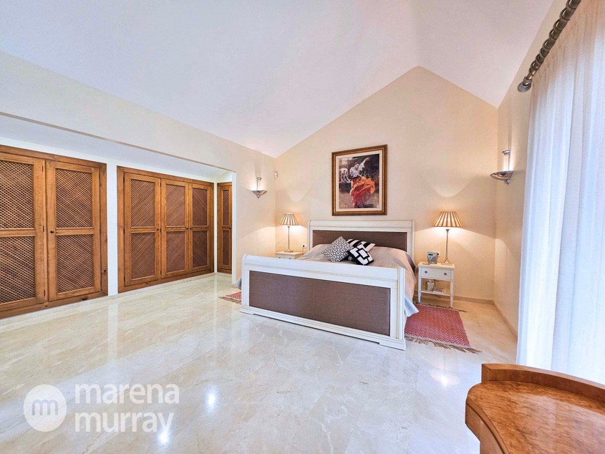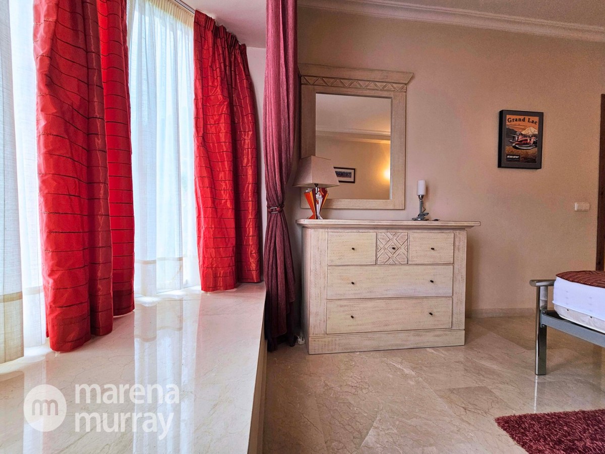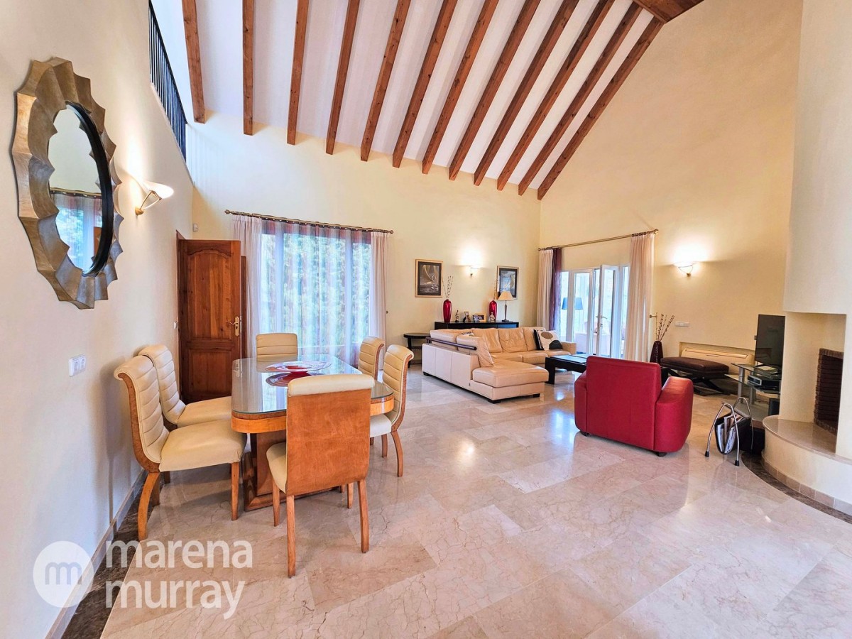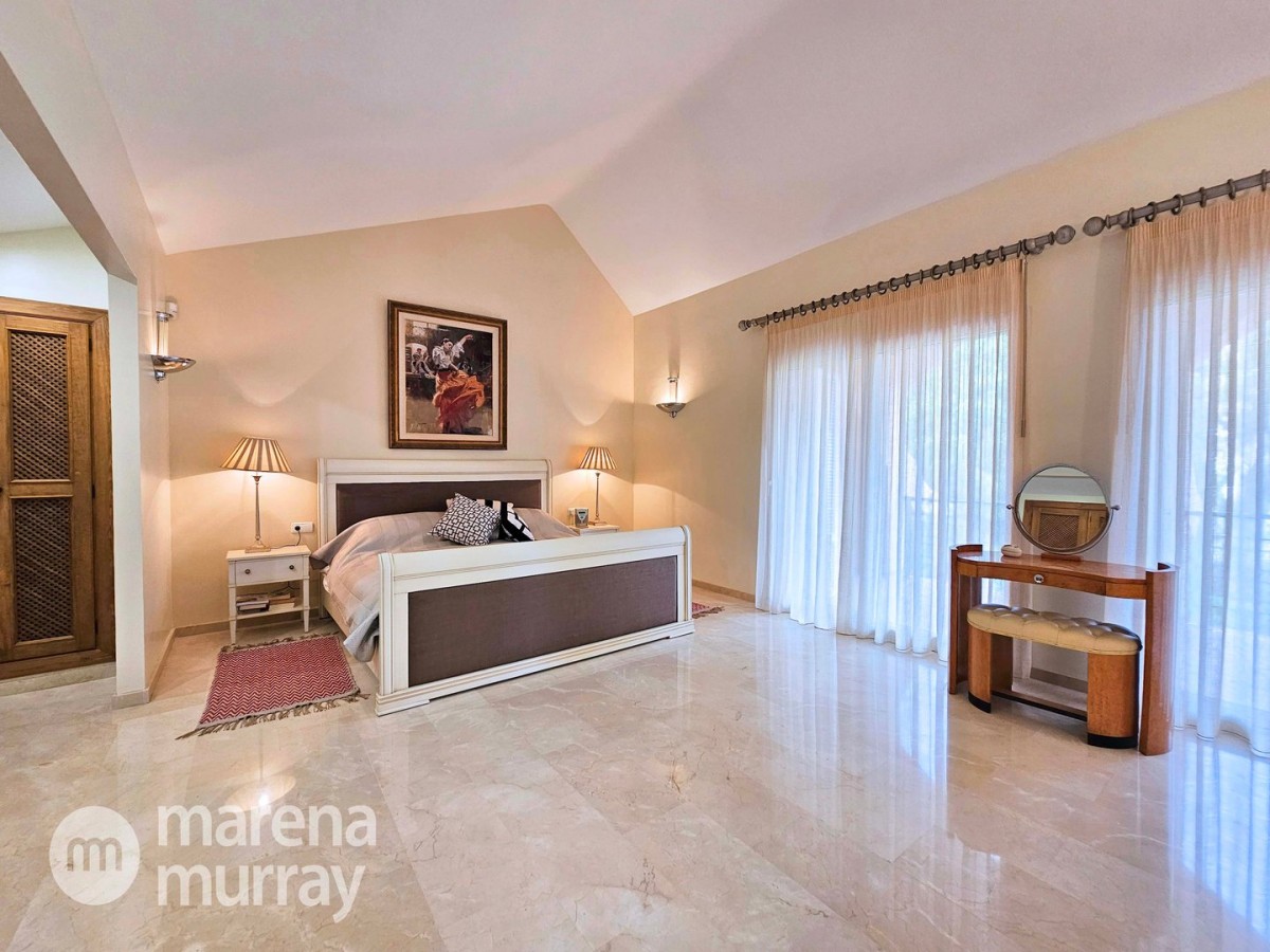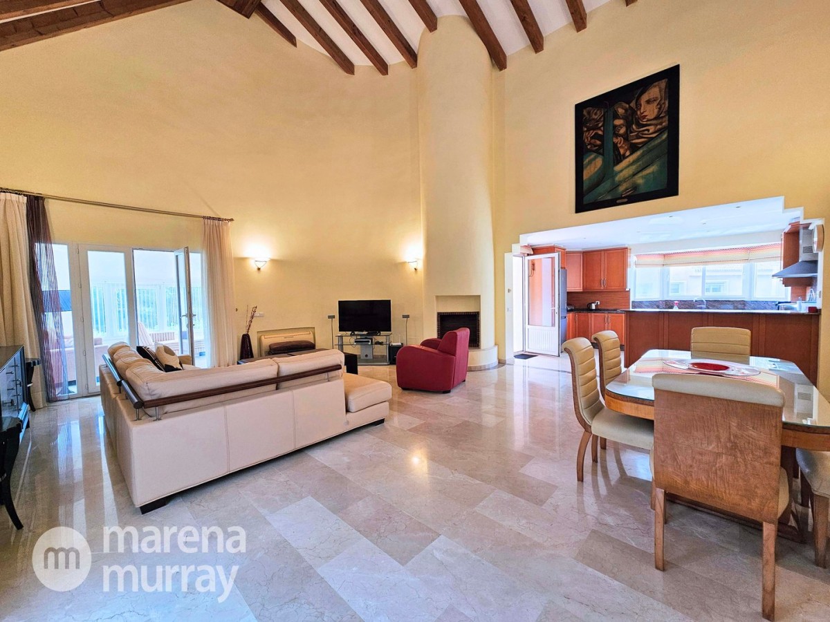 Exclusive Elegant Villa on the Prestigious North Golf Course Nestled within a spectacular private enclave overlooking the stunning North Golf Course, this exceptional villa offers a rare blend of luxury, sophistication, and tranquillity. A sweeping private driveway leads to an expansive parking area and provides direct access to a private double garage with an automatic door. Beautifully maintained and distributed over three levels, the villa is designed for exceptional living and entertaining. Spacious open-plan reception and kitchen areas flow seamlessly together, creating an inviting setting for both relaxation and social gatherings. Floor-to-ceiling windows throughout flood every room with natural light, enhancing the sense of space and warmth. West-facing terraces and living areas enjoy breathtaking sunset views, offering privacy and uninterrupted open vistas. The property features four generously proportioned bedrooms, including an elegant master suite with its own private terrace. Outdoors, a sparkling private swimming pool is surrounded by lush, manicured gardens, further enhancing the villa’s serene atmosphere. This outstanding home offers the perfect balance of privacy and convenience and is presented in immaculate condition—ready to move into and enjoy from day one.