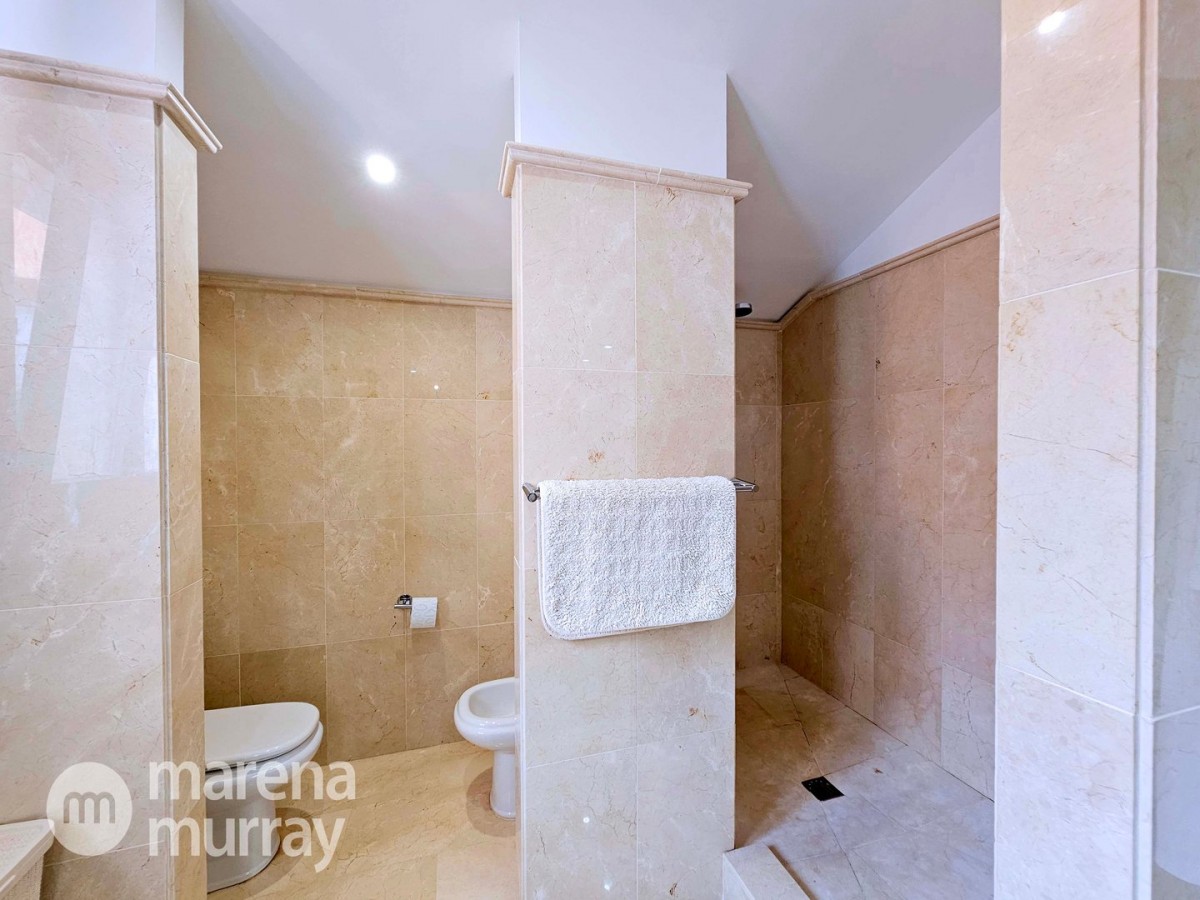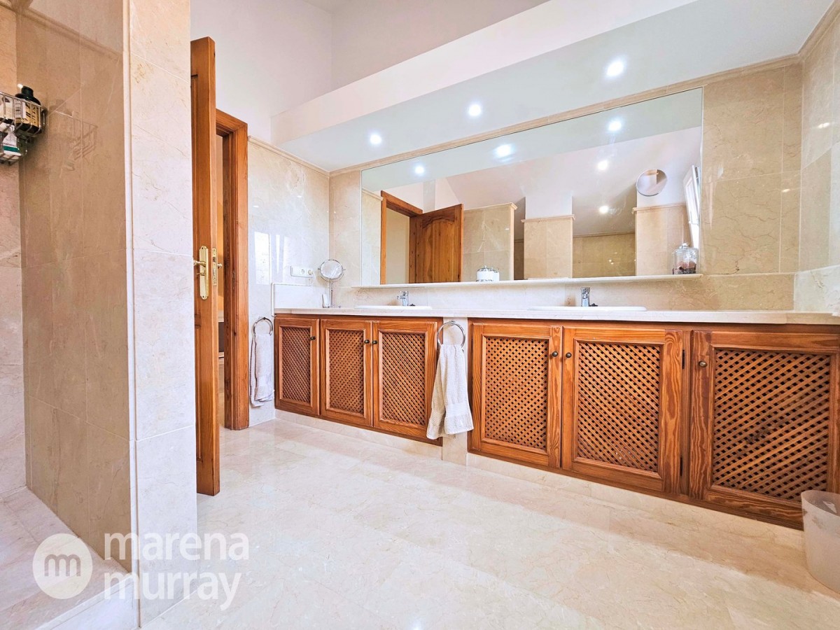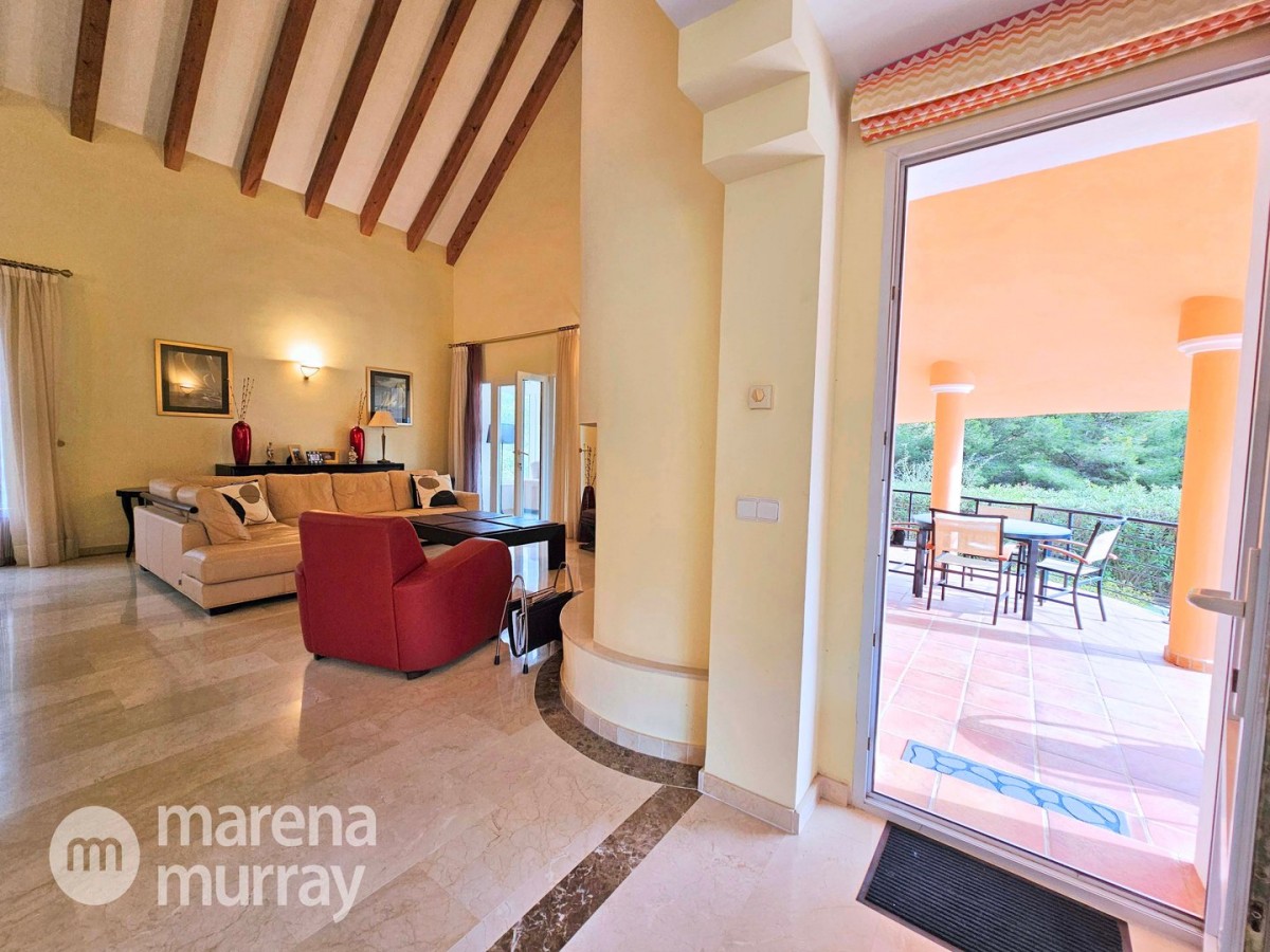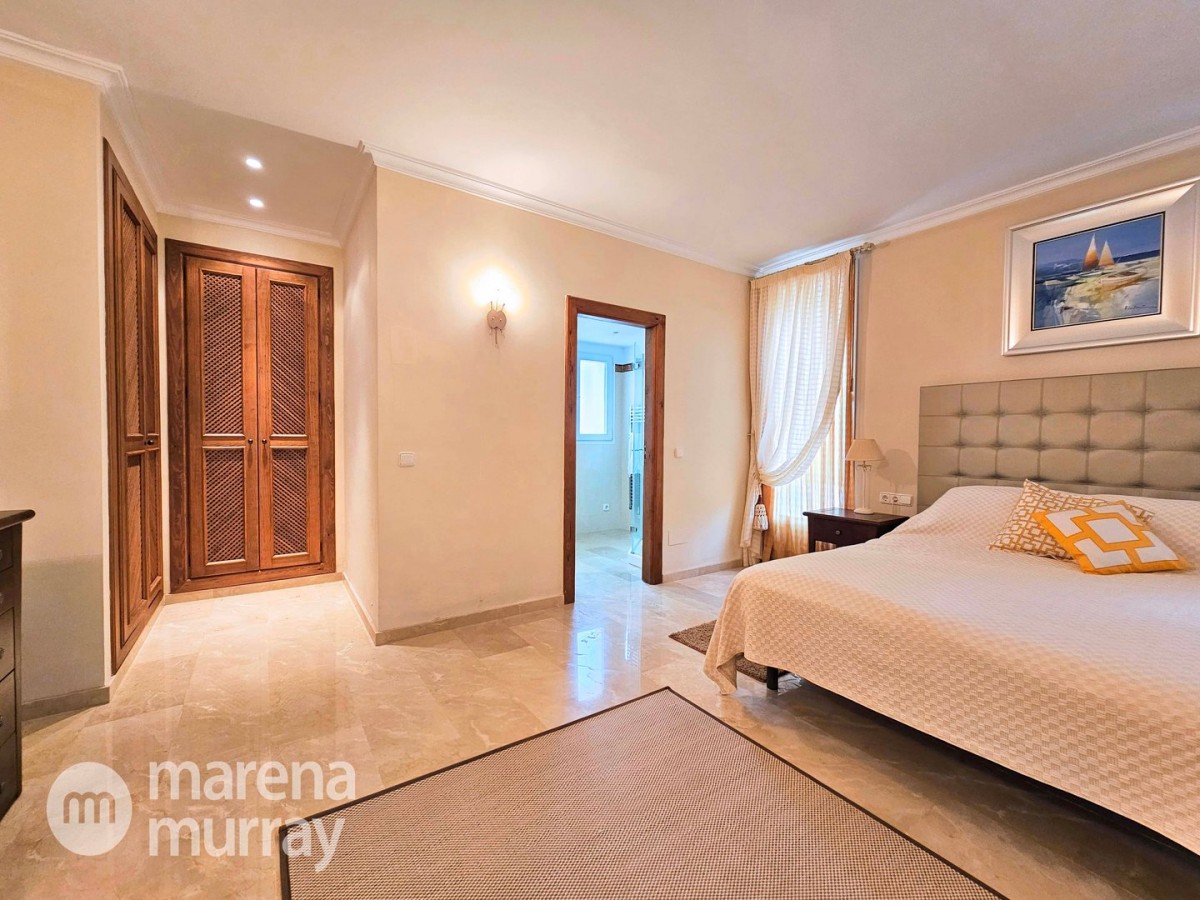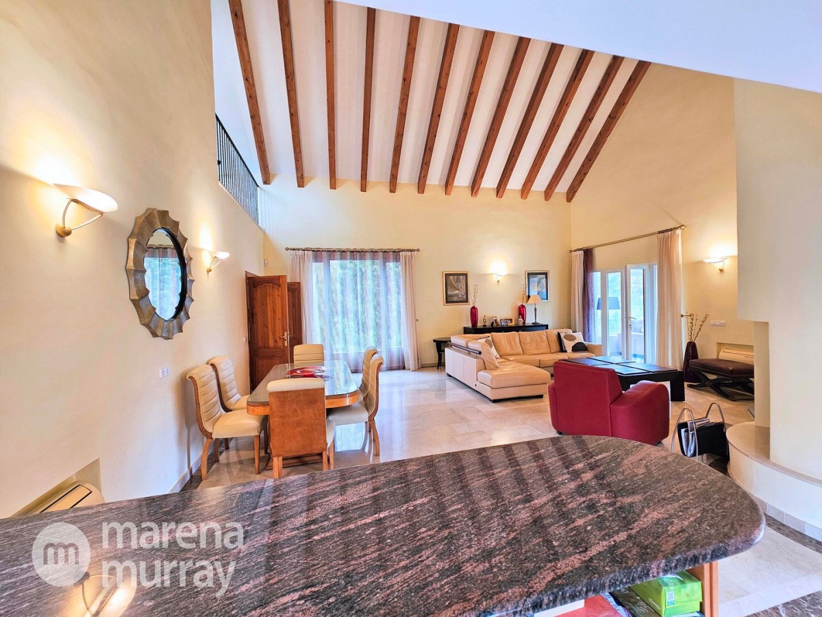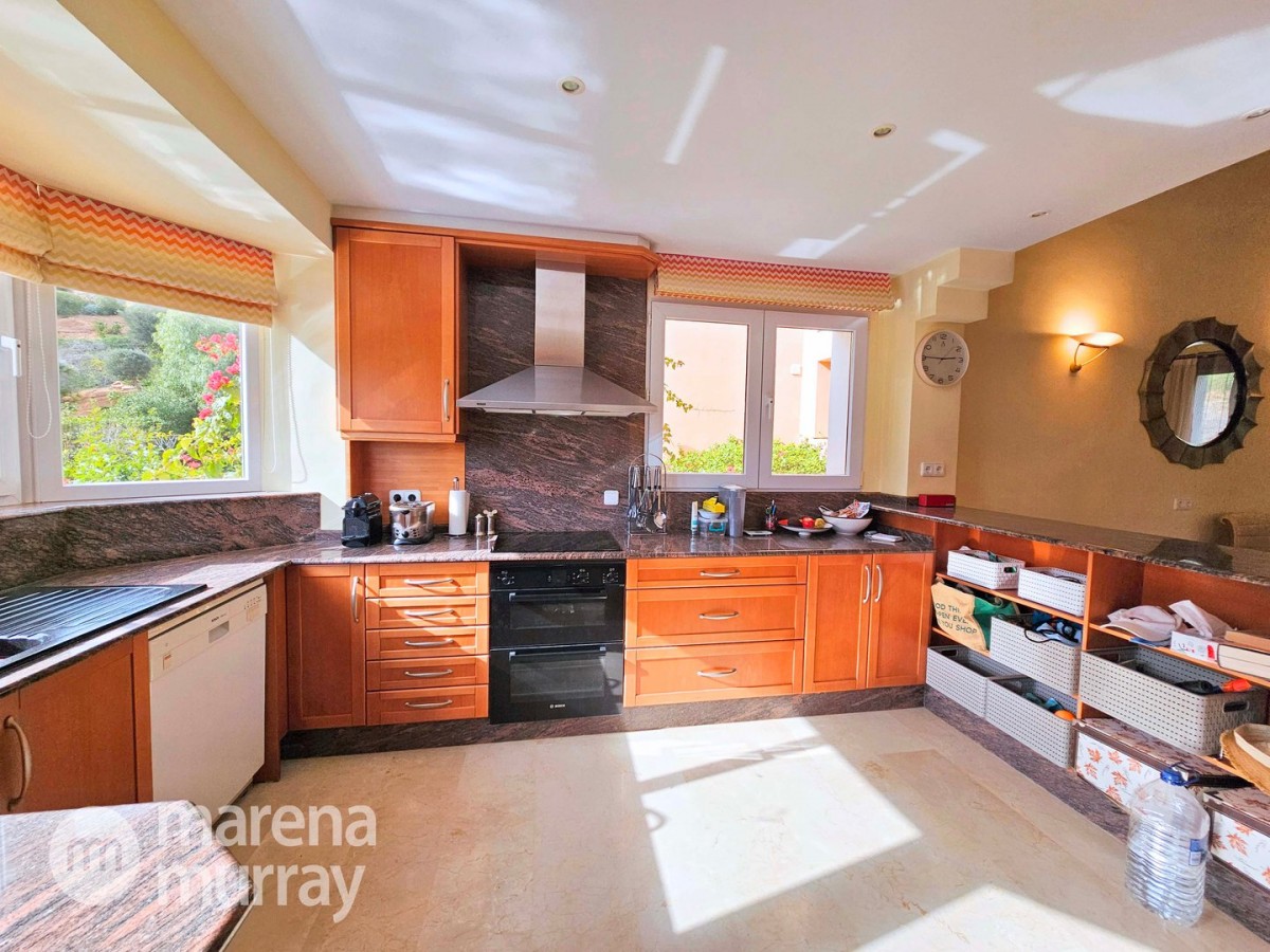 Exclusive Elegant Villa on the Prestigious North Golf Course Nestled within a spectacular private enclave overlooking the stunning North Golf Course, this exceptional villa offers a rare blend of luxury, sophistication, and tranquillity. A sweeping private driveway leads to an expansive parking area and provides direct access to a private double garage with an automatic door. Beautifully maintained and distributed over three levels, the villa is designed for exceptional living and entertaining. Spacious open-plan reception and kitchen areas flow seamlessly together, creating an inviting setting for both relaxation and social gatherings. Floor-to-ceiling windows throughout flood every room with natural light, enhancing the sense of space and warmth. West-facing terraces and living areas enjoy breathtaking sunset views, offering privacy and uninterrupted open vistas. The property features four generously proportioned bedrooms, including an elegant master suite with its own private terrace. Outdoors, a sparkling private swimming pool is surrounded by lush, manicured gardens, further enhancing the villa’s serene atmosphere. This outstanding home offers the perfect balance of privacy and convenience and is presented in immaculate condition—ready to move into and enjoy from day one.