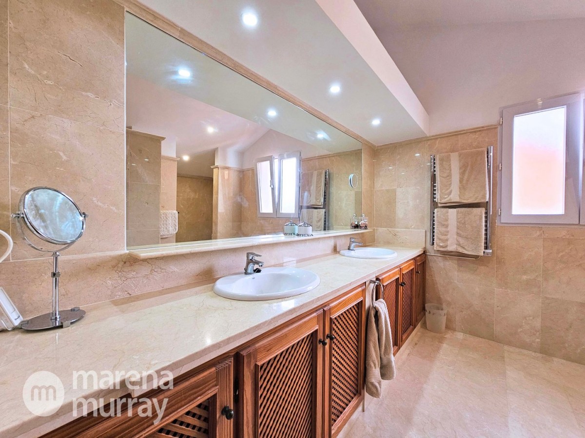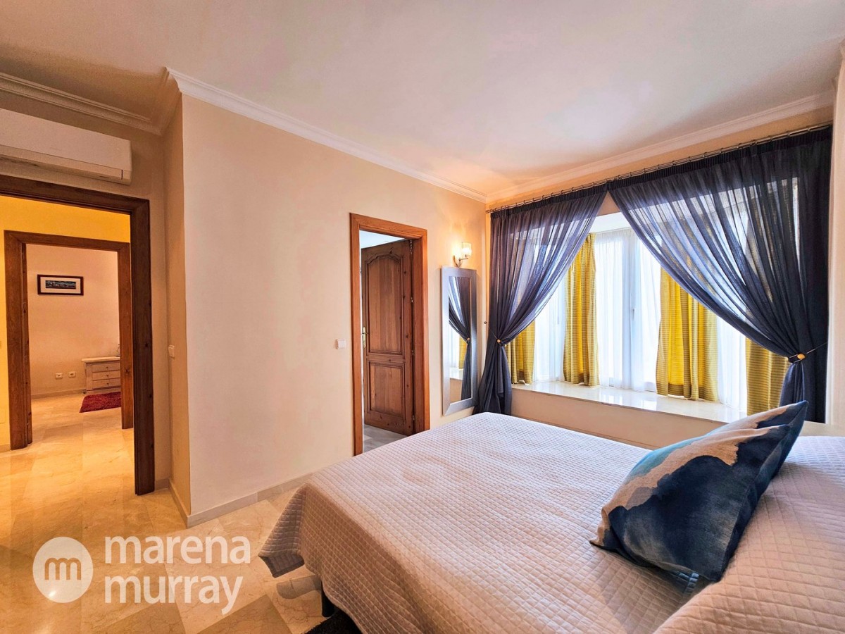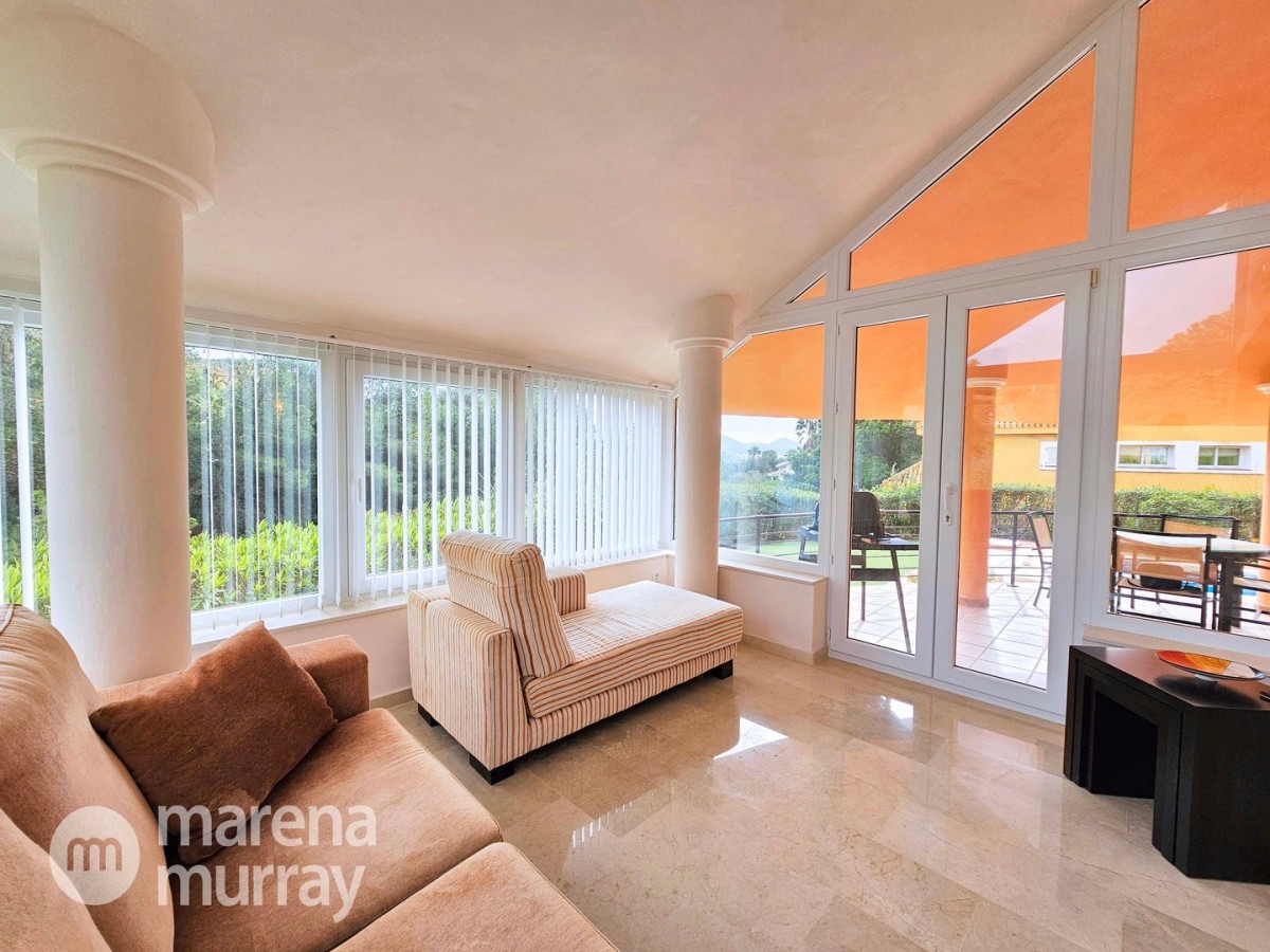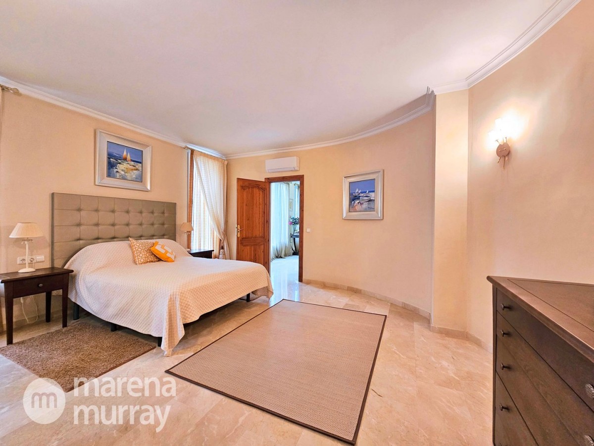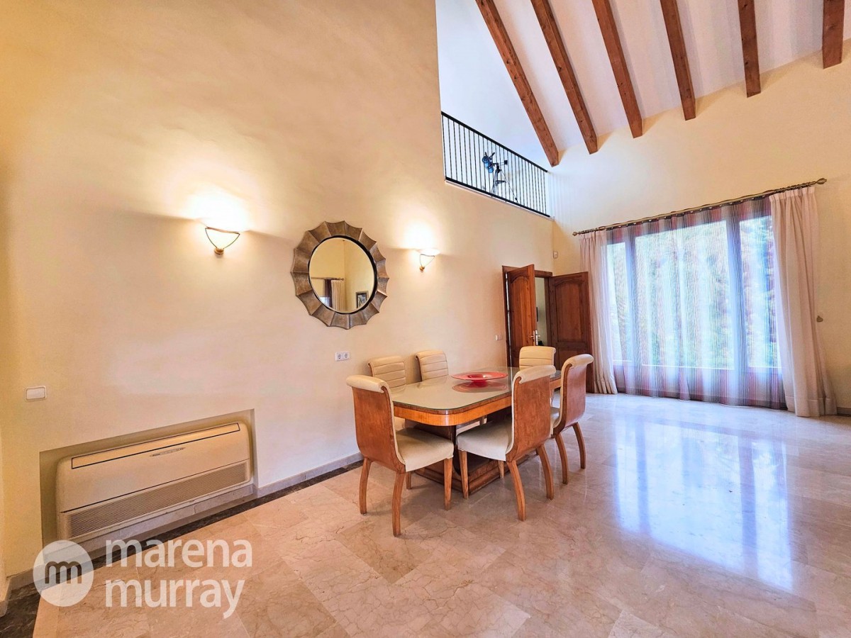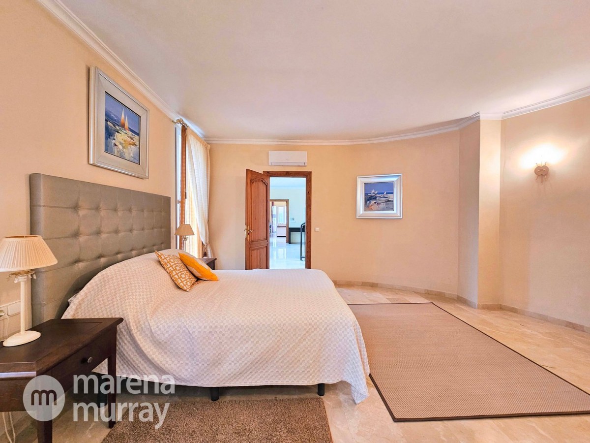 Exclusive Elegant Villa on the Prestigious North Golf Course Nestled within a spectacular private enclave overlooking the stunning North Golf Course, this exceptional villa offers a rare blend of luxury, sophistication, and tranquillity. A sweeping private driveway leads to an expansive parking area and provides direct access to a private double garage with an automatic door. Beautifully maintained and distributed over three levels, the villa is designed for exceptional living and entertaining. Spacious open-plan reception and kitchen areas flow seamlessly together, creating an inviting setting for both relaxation and social gatherings. Floor-to-ceiling windows throughout flood every room with natural light, enhancing the sense of space and warmth. West-facing terraces and living areas enjoy breathtaking sunset views, offering privacy and uninterrupted open vistas. The property features four generously proportioned bedrooms, including an elegant master suite with its own private terrace. Outdoors, a sparkling private swimming pool is surrounded by lush, manicured gardens, further enhancing the villa’s serene atmosphere. This outstanding home offers the perfect balance of privacy and convenience and is presented in immaculate condition—ready to move into and enjoy from day one.