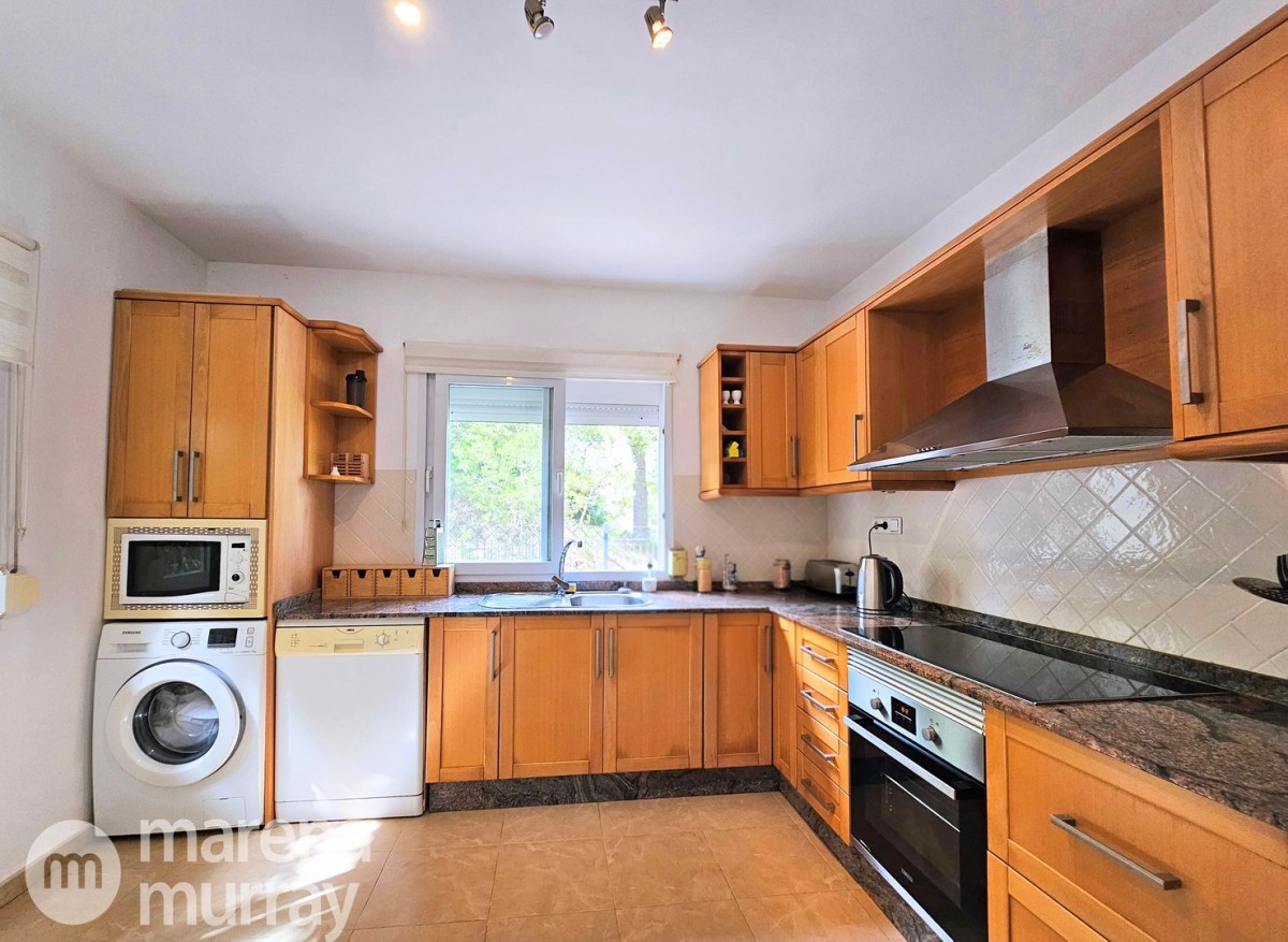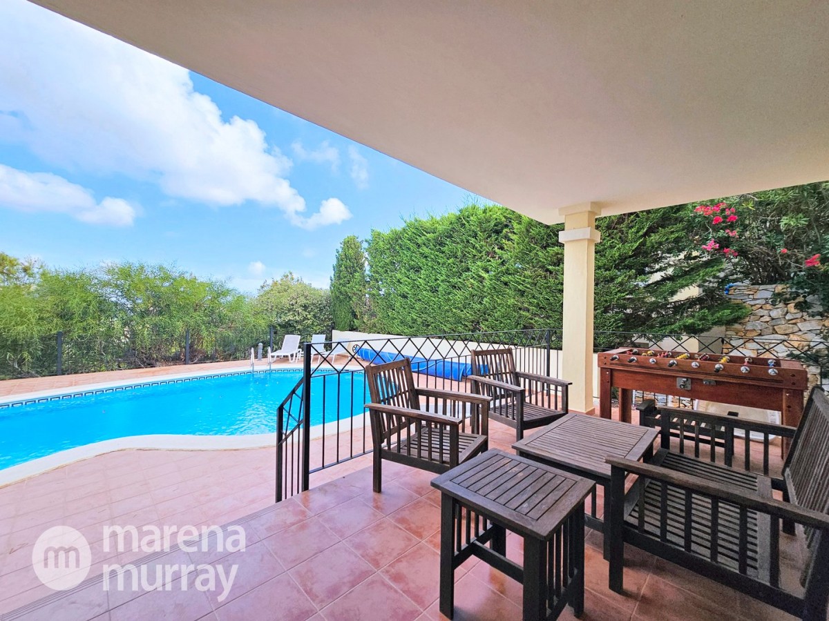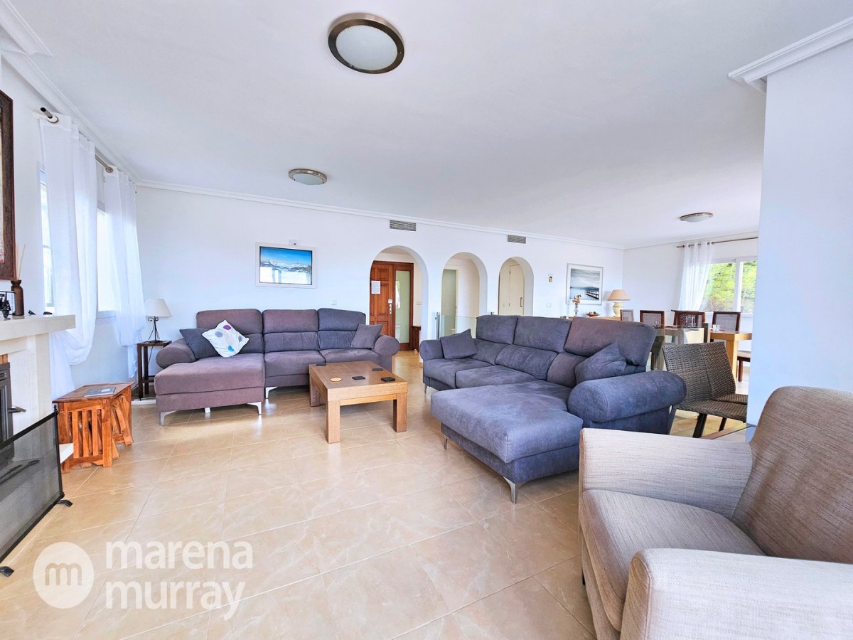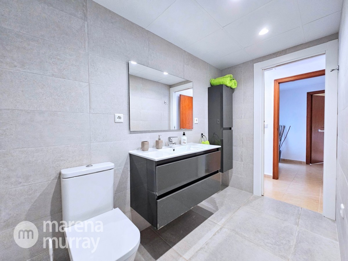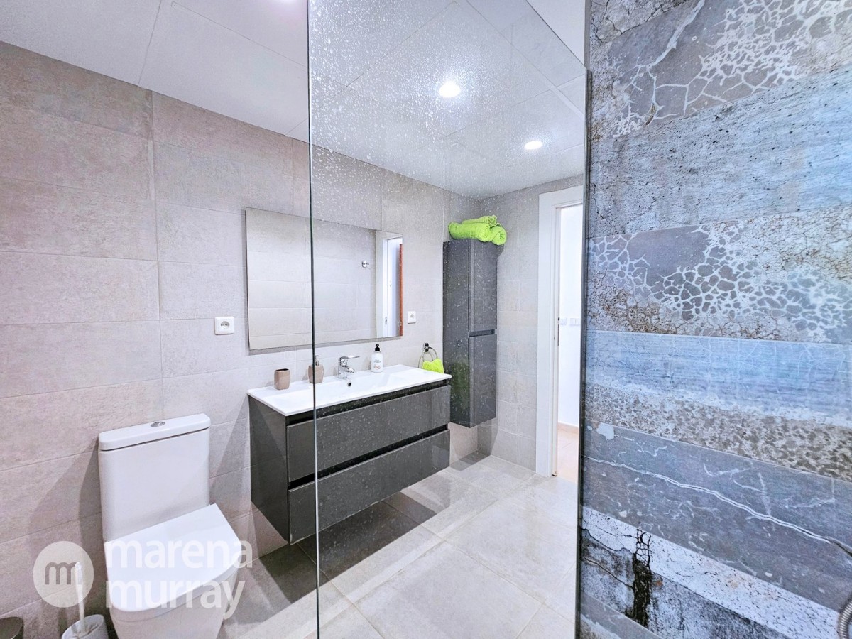 This modern four bedroom villa is located in the sought after Monte León community, set in an elevated position with wide reaching views across La Manga Club and the surrounding mountains. The interior is bright and contemporary, with an open plan layout and plenty of natural light throughout. The main living area opens onto a spacious terrace, which leads up to a generous solarium, ideal for relaxing or entertaining. From the main terrace, a staircase leads down to a second terrace where you'll find a private swimming pool and additional space for outdoor seating or sunbathing. The master bedroom features an ensuite bathroom and has direct access to the pool terrace through sliding doors. Both guest bedrooms, on the lower level, also have ensuite bathrooms with walk-in showers, providing privacy and comfort for family or visitors. A fourth bedroom is located on the entry level, next to a separate shower room. The villa is in excellent condition and offers modern finishes throughout. Its position in Monte León provides peace and privacy, while still being not too far from the amenities of La Manga Club. This property is well suited as a full time home or holiday home.