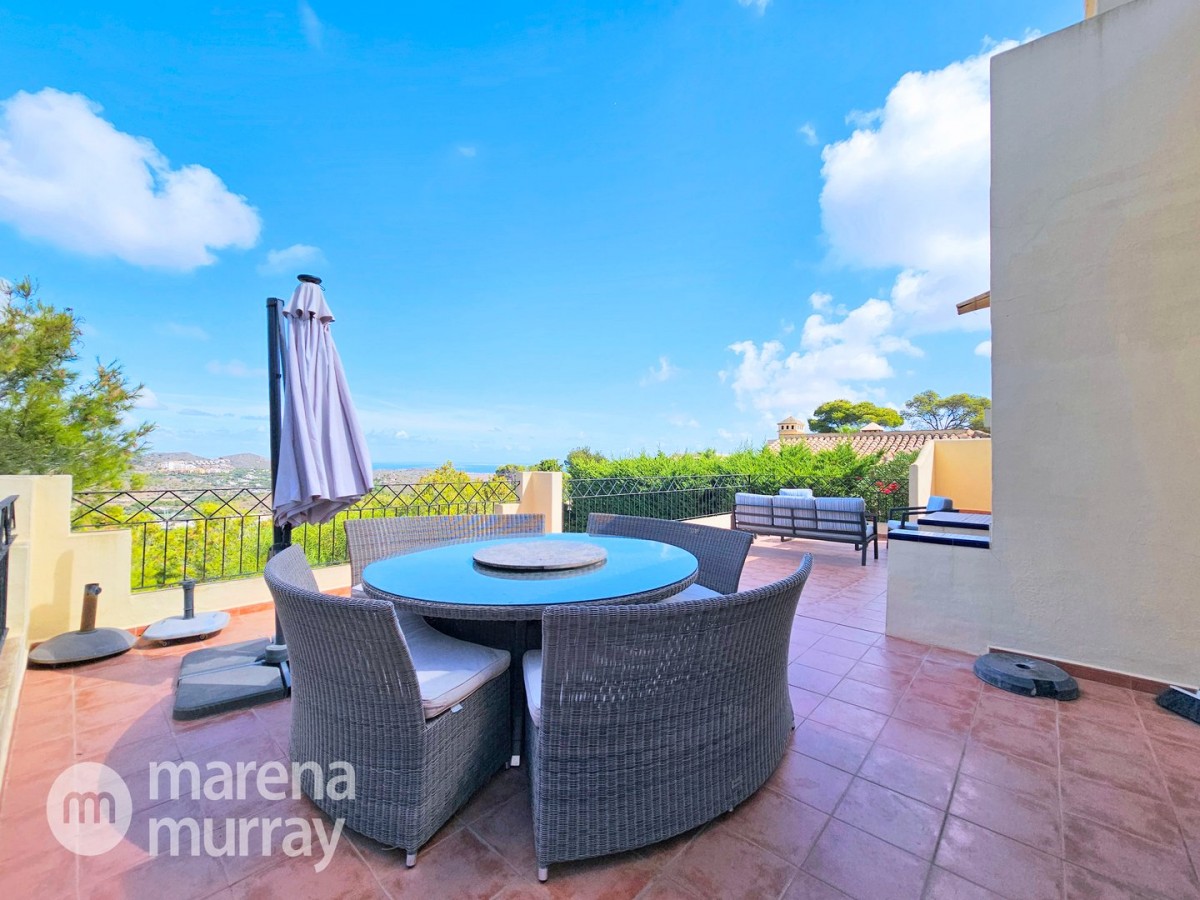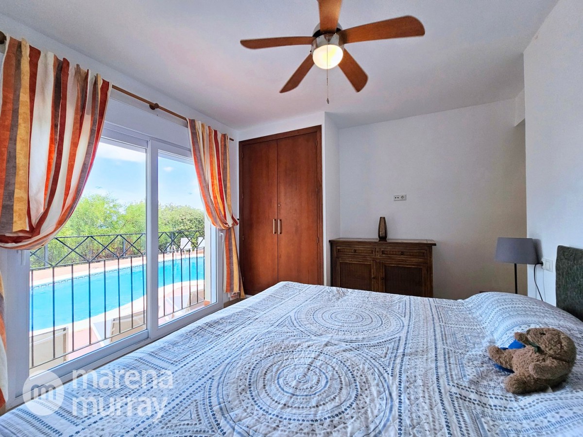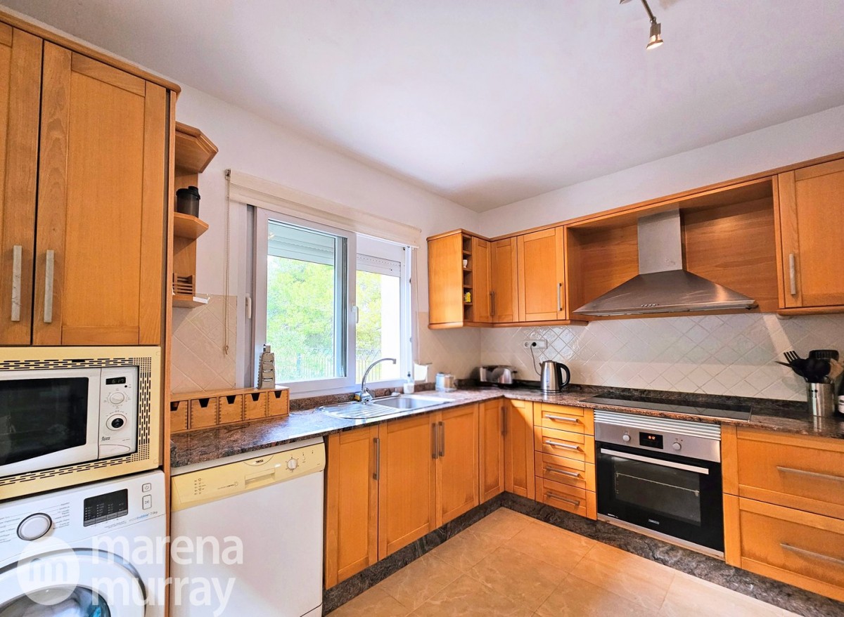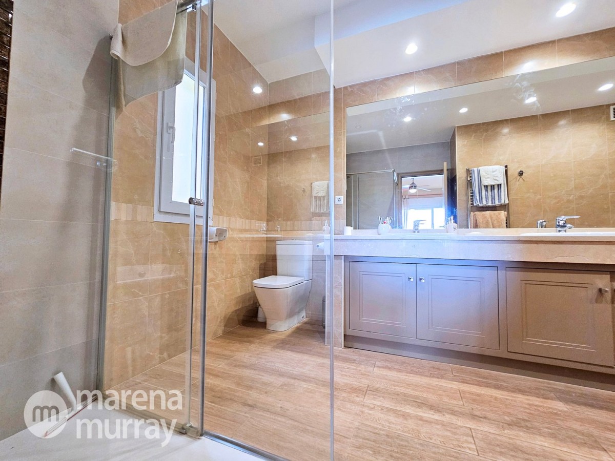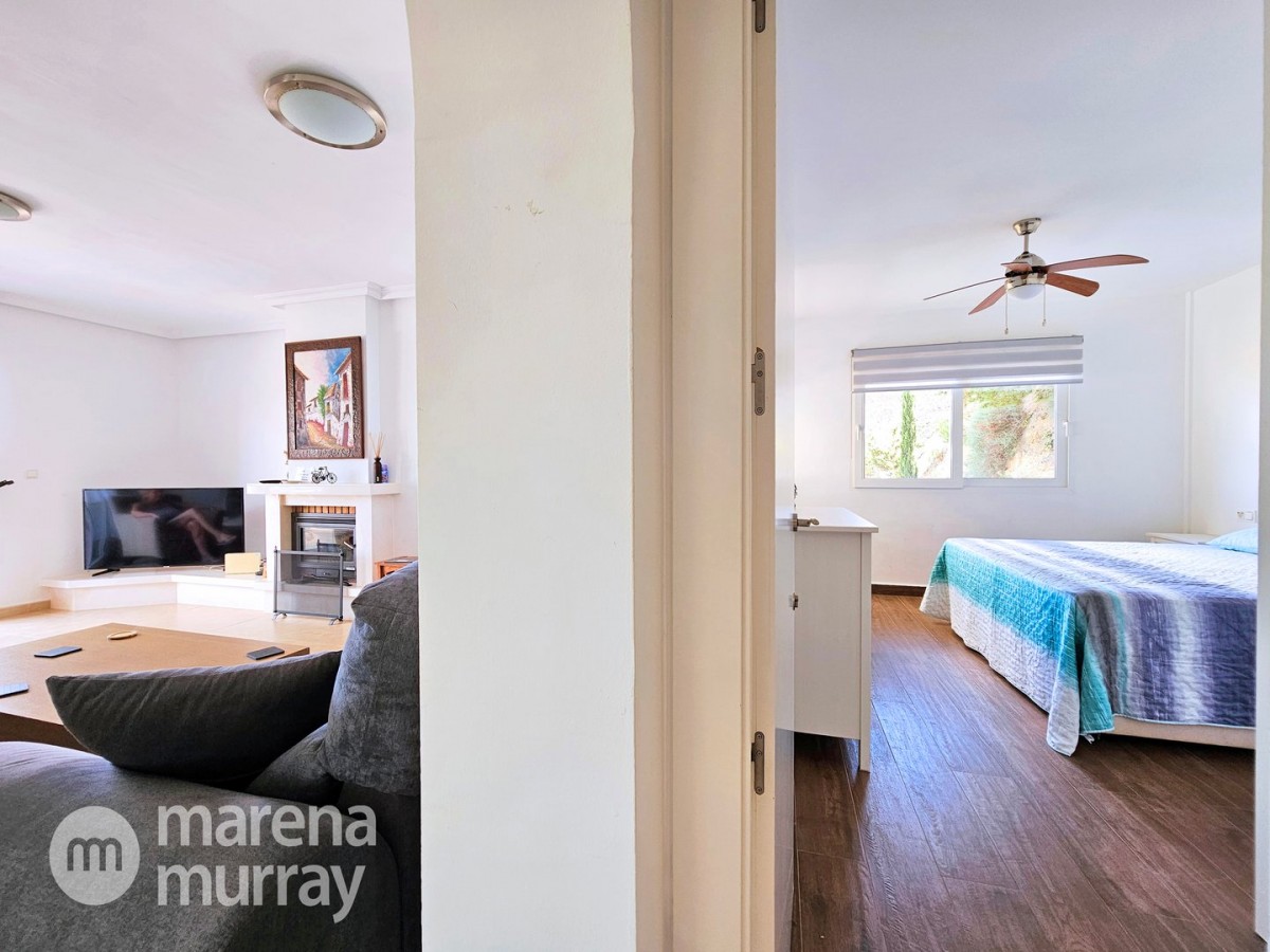 This modern four bedroom villa is located in the sought after Monte León community, set in an elevated position with wide reaching views across La Manga Club and the surrounding mountains. The interior is bright and contemporary, with an open plan layout and plenty of natural light throughout. The main living area opens onto a spacious terrace, which leads up to a generous solarium, ideal for relaxing or entertaining. From the main terrace, a staircase leads down to a second terrace where you'll find a private swimming pool and additional space for outdoor seating or sunbathing. The master bedroom features an ensuite bathroom and has direct access to the pool terrace through sliding doors. Both guest bedrooms, on the lower level, also have ensuite bathrooms with walk-in showers, providing privacy and comfort for family or visitors. A fourth bedroom is located on the entry level, next to a separate shower room. The villa is in excellent condition and offers modern finishes throughout. Its position in Monte León provides peace and privacy, while still being not too far from the amenities of La Manga Club. This property is well suited as a full time home or holiday home.