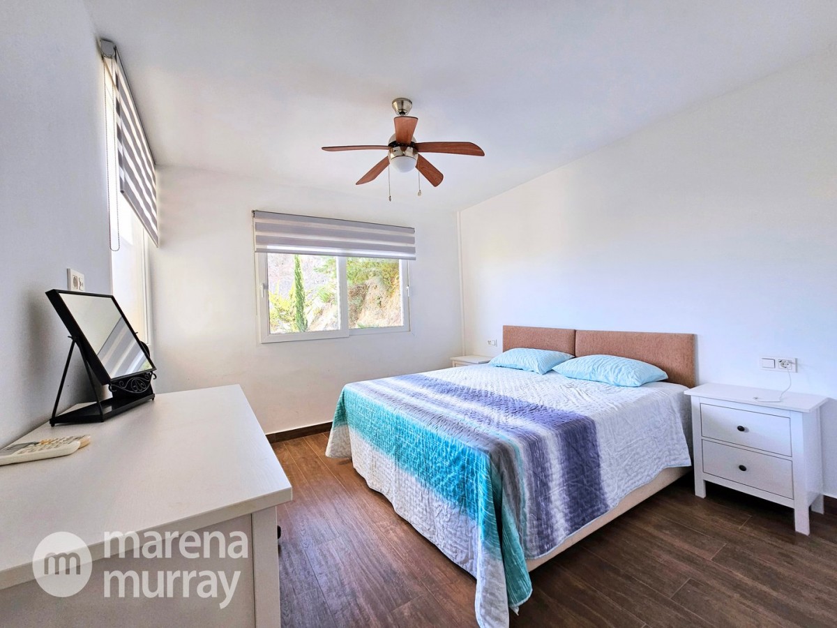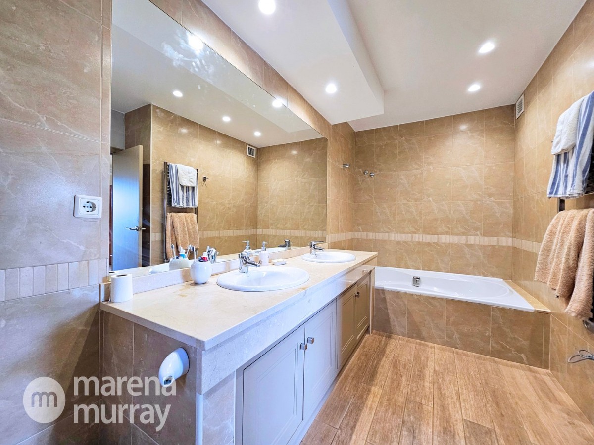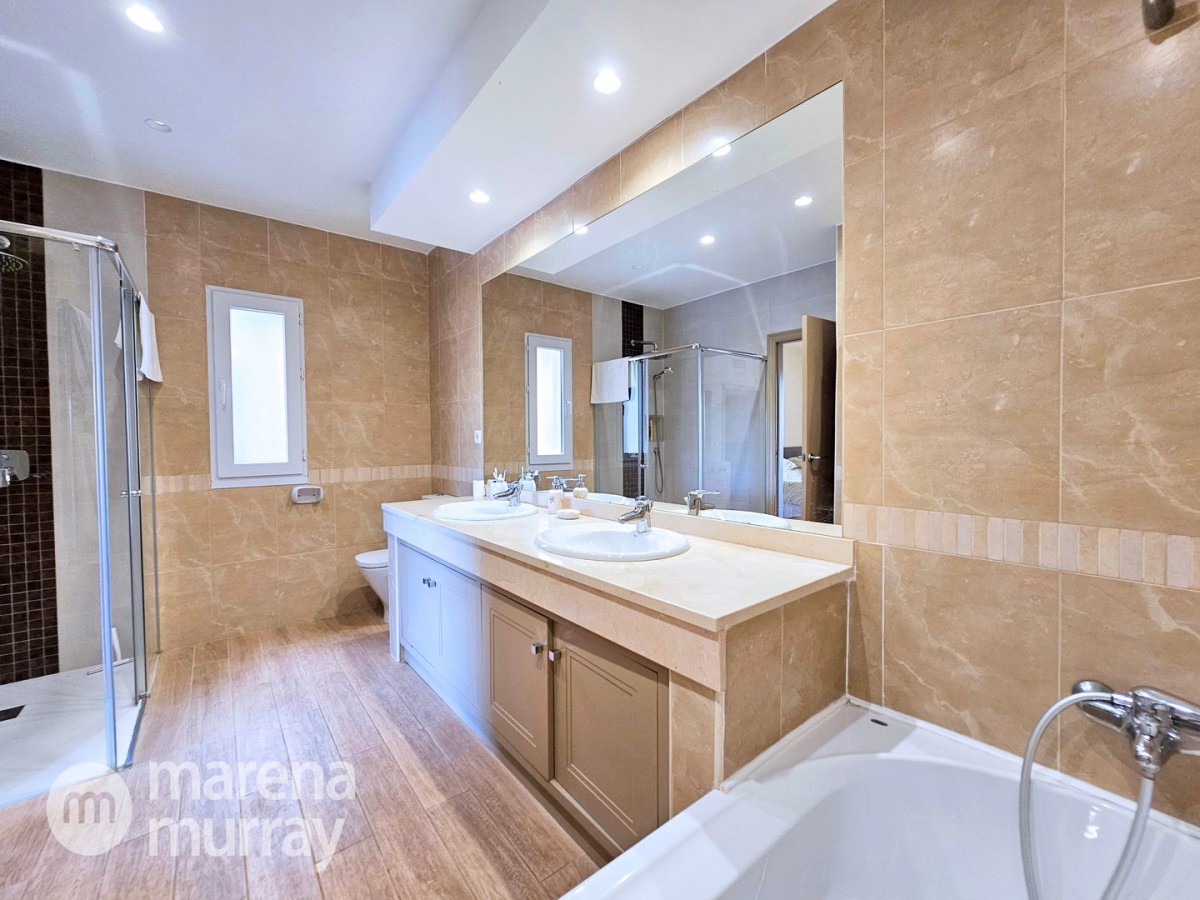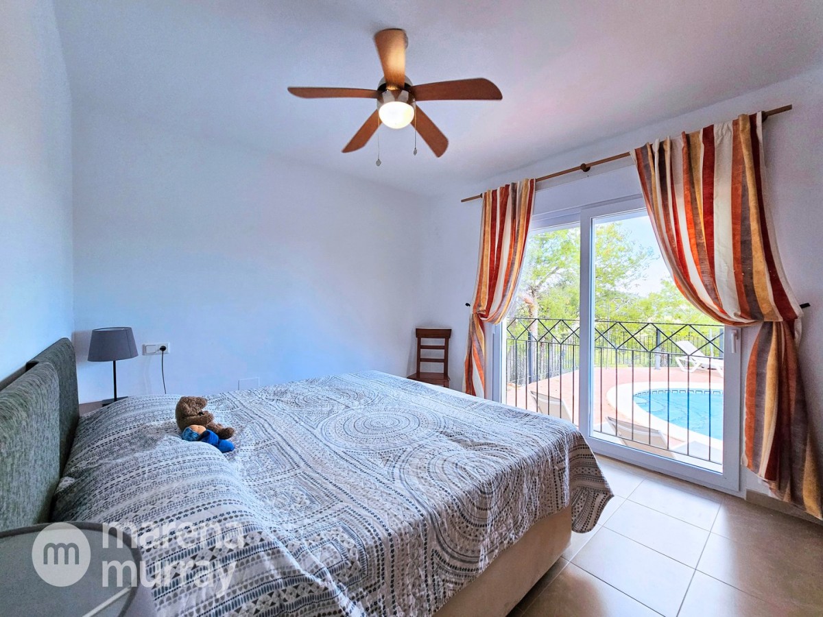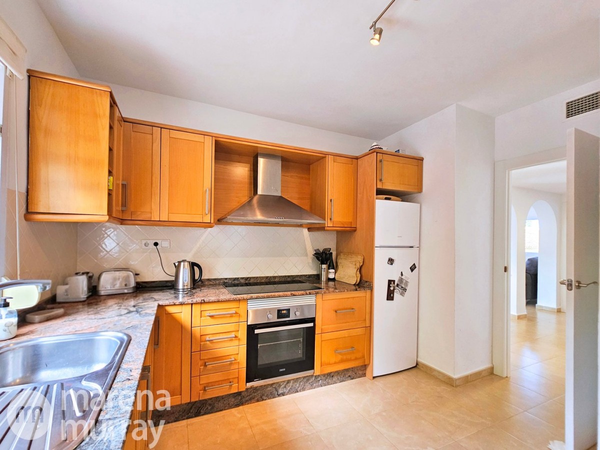 This modern four bedroom villa is located in the sought after Monte León community, set in an elevated position with wide reaching views across La Manga Club and the surrounding mountains. The interior is bright and contemporary, with an open plan layout and plenty of natural light throughout. The main living area opens onto a spacious terrace, which leads up to a generous solarium, ideal for relaxing or entertaining. From the main terrace, a staircase leads down to a second terrace where you'll find a private swimming pool and additional space for outdoor seating or sunbathing. The master bedroom features an ensuite bathroom and has direct access to the pool terrace through sliding doors. Both guest bedrooms, on the lower level, also have ensuite bathrooms with walk-in showers, providing privacy and comfort for family or visitors. A fourth bedroom is located on the entry level, next to a separate shower room. The villa is in excellent condition and offers modern finishes throughout. Its position in Monte León provides peace and privacy, while still being not too far from the amenities of La Manga Club. This property is well suited as a full time home or holiday home.