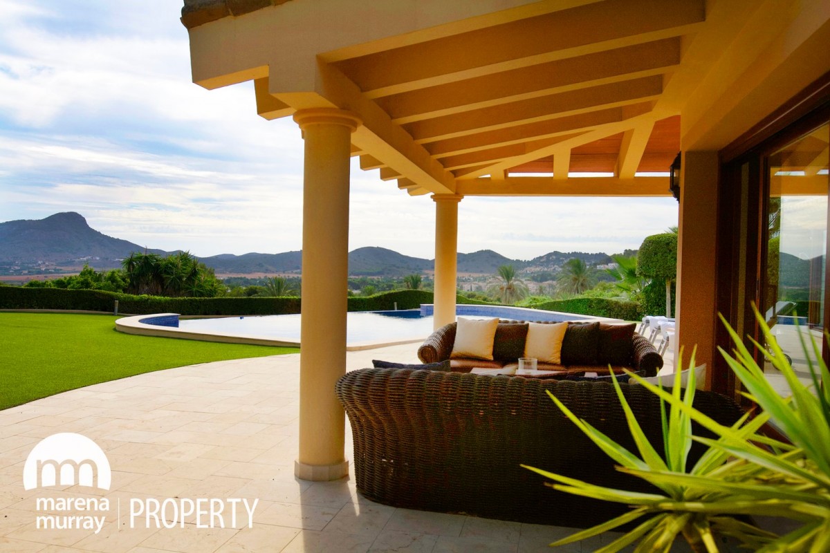 It is a rare occurrence to have the opportunity to bring to the market such a fine example of a unique and simply stunning Individual Villa. Nestled into the mature landscape of this private fairway plot presiding over the third tee, it offers spectacular and impeccable views across the Golf Course, Lion head Mountain and the Mar Menor Sea. As you pass through the vintage front door and across the meticulously maintained marble floors, your eye is guided to the beautiful landscape gardens and private pitch and putt. With five bedrooms and an additional separate apartment all furnished to the highest standard. This is a spectacular family home from 2001 with the exterior terracing cleverly allowing you to enjoy a private swim in the magnificent infinity swimming pool whilst enjoying the breathtaking views! As exclusive agents for this premium property do not delay to view.