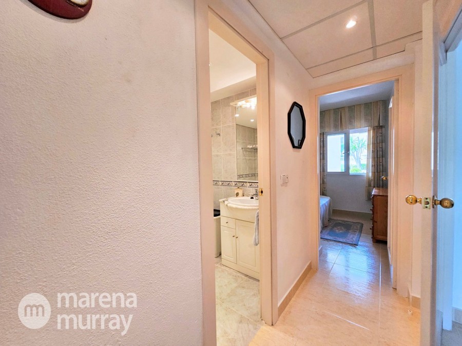 Situated in the vibrant and well maintained Bellaluz community, this delightful apartment offers the perfect blend of comfort, convenience, and Mediterranean charm. Situated among beautifully landscaped communal gardens, the property is just a short stroll from the inviting communal swimming pool and separate children's pool, ideal for family living or relaxed holidays. The apartment features two generously sized double bedrooms, each with built-in storage, and a shared family bathroom complete with both a bath and overhead shower. The bright and spacious lounge/diner provides ample room for entertaining, with direct access to a good sized private balcony. Enjoy the outdoors year round thanks to the built in sliding shutters, which offer both airflow and shade without needing to close the doors. Bellaluz is known for its lively central plaza, home to a selection of excellent bars and restaurants, making it a social hub within La Manga Club. You’re also just a short distance from the newly renovated tennis and padel centre, making this property ideal for sports enthusiasts and families alike.